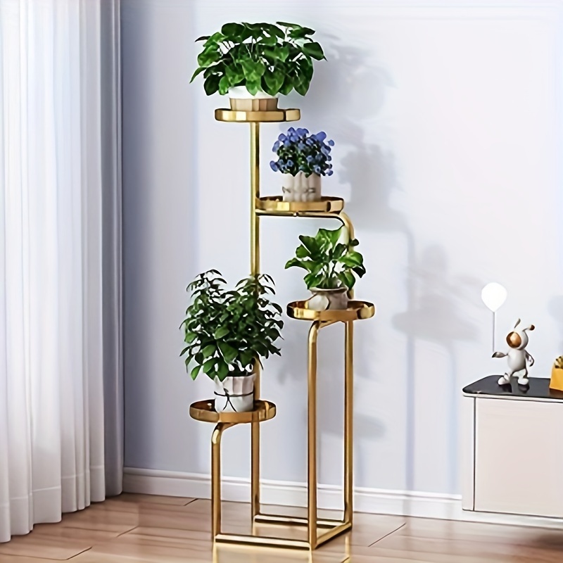 Product information for TEMU Metal Planter, Flower Stand, Flower Stairs With Wheels, Metal Plant Stand With 6 Levels, Retro Plant Shelf For Yard Decoration, Garden, Balcony, Room, Office (black)