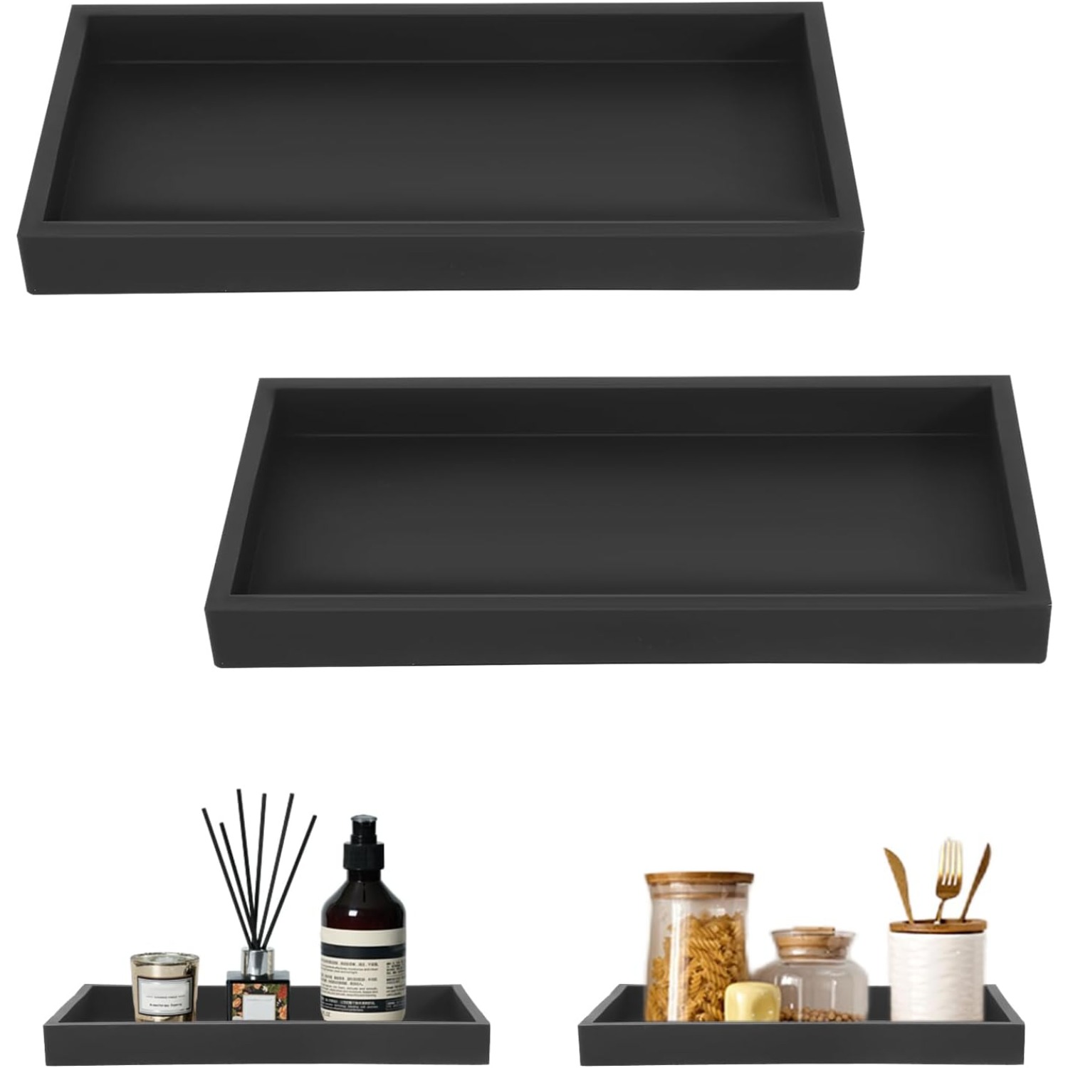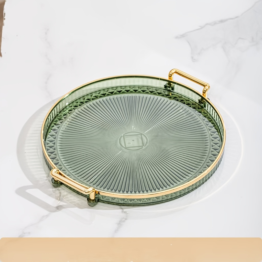 TEMU Modern Black Round Abs Tray With Candle Holder - Stylish Farmhouse Decor, Suitable For Home, Kitchen, And Bathroom - Coffee, Tea Or Display Items, Classic Structure, Ideal Christmas Serving Tray