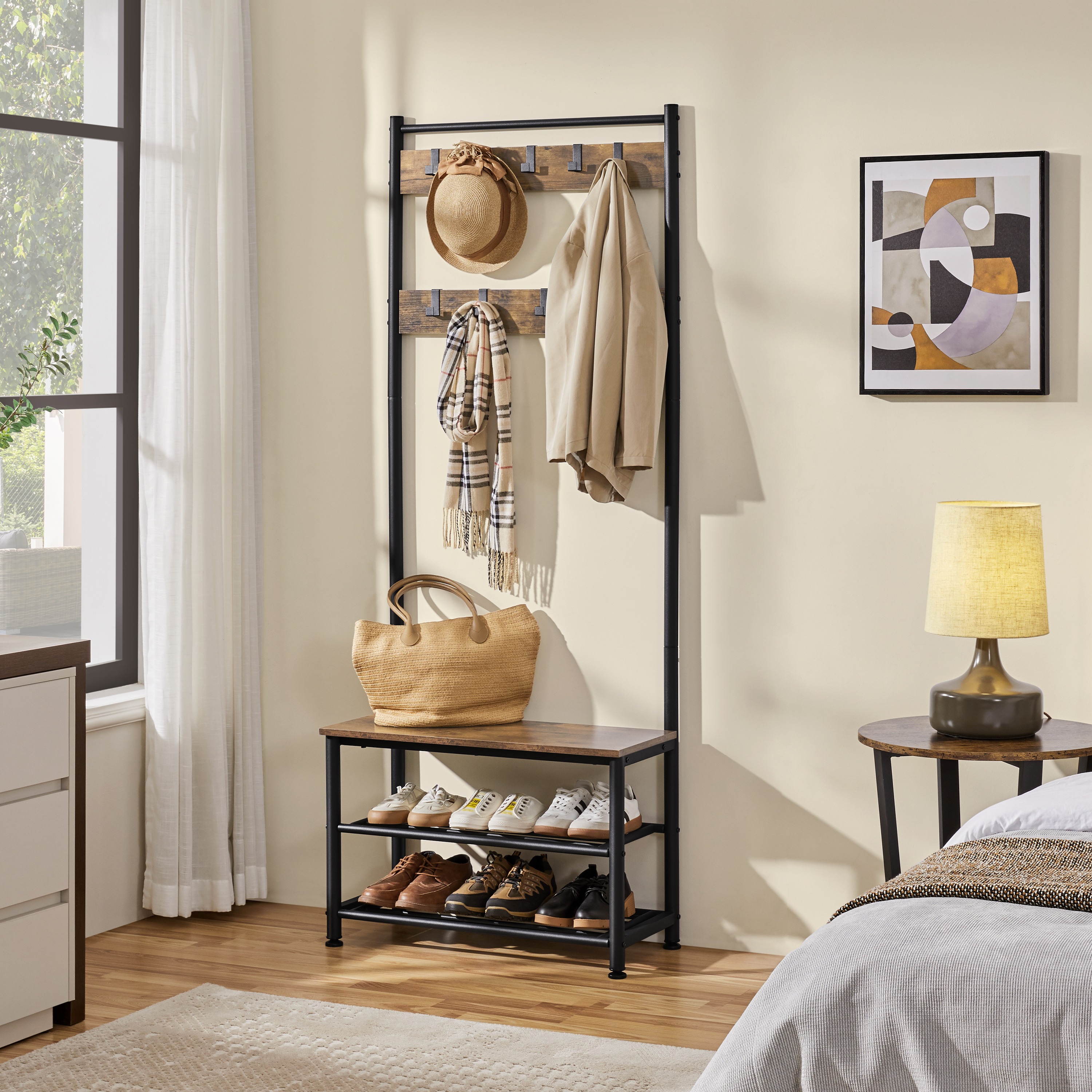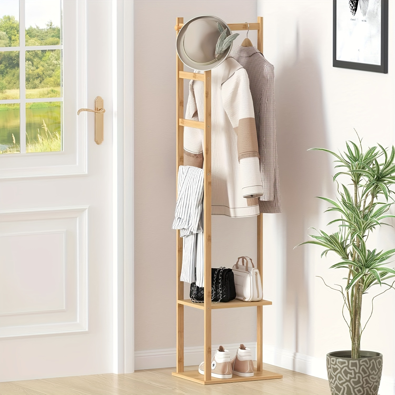TEMU Multi Functional Shoe And Jacket Metal Rack -60cm, Detachable Hooks, Multiple Layers, Independent Storage Space For Homes And Apartments