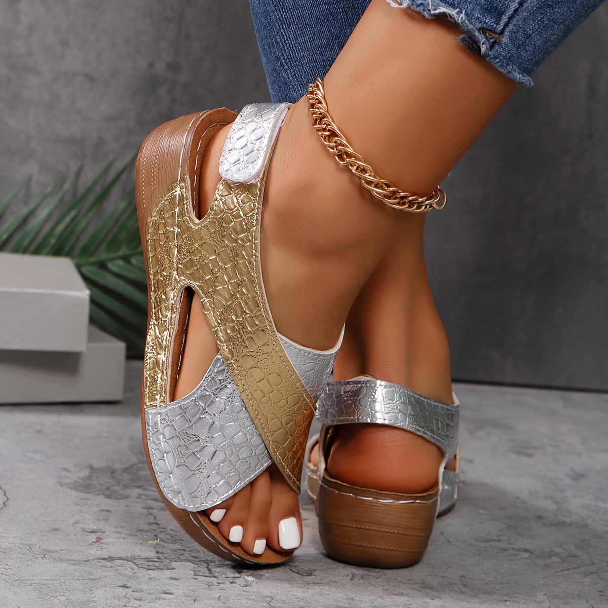 TEMU Non Slip Women's Platform Open Toe Sandals, Solid Color Ankle Buckle Strap Casual Outdoor Shoes