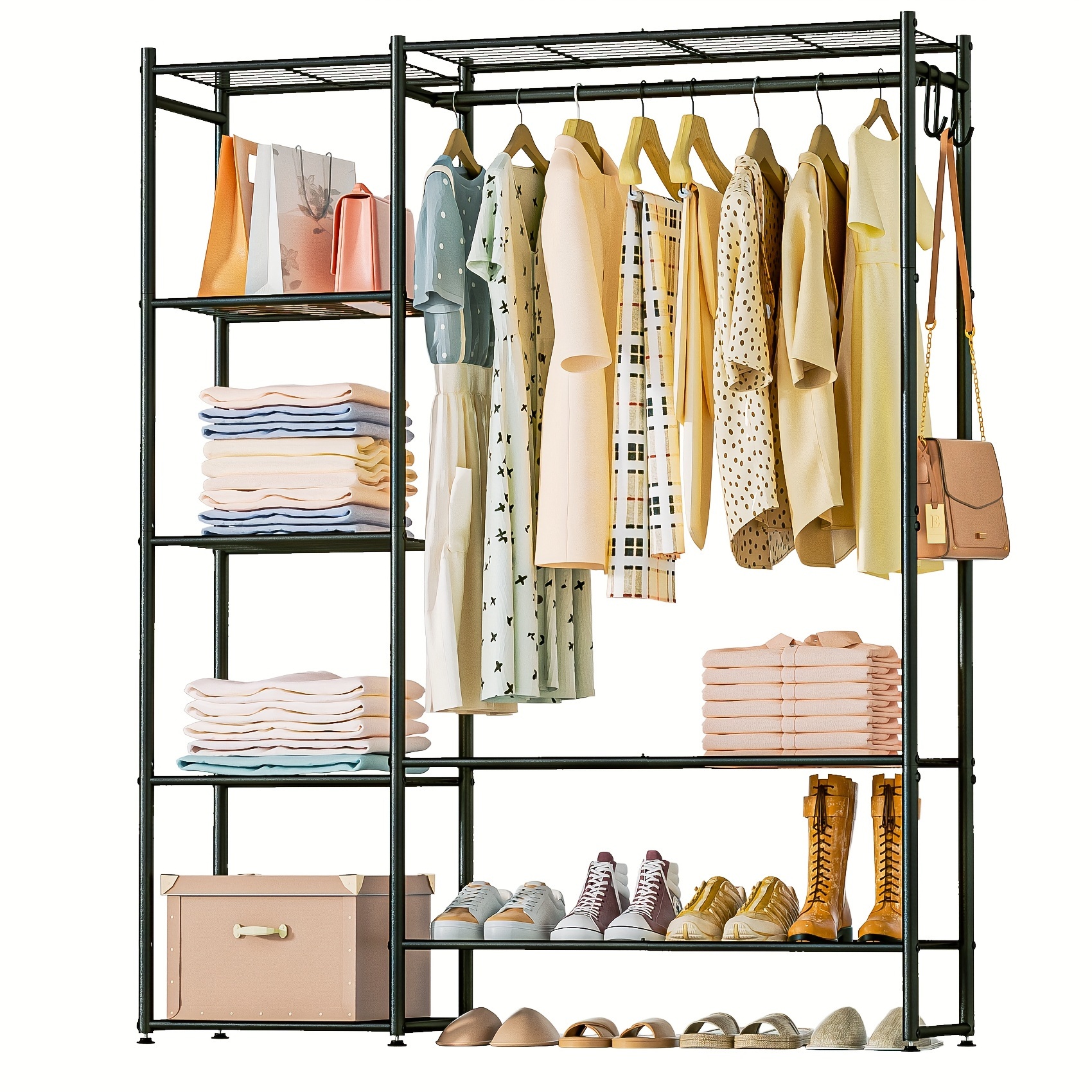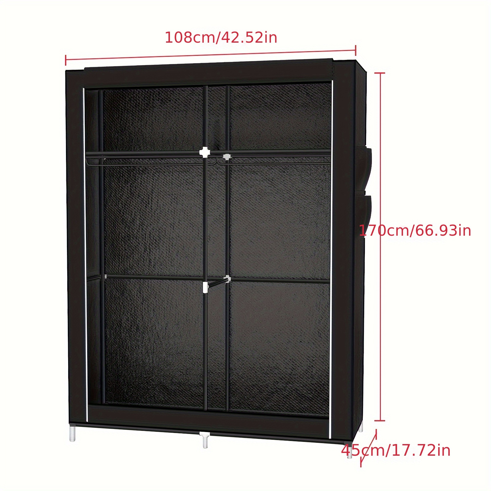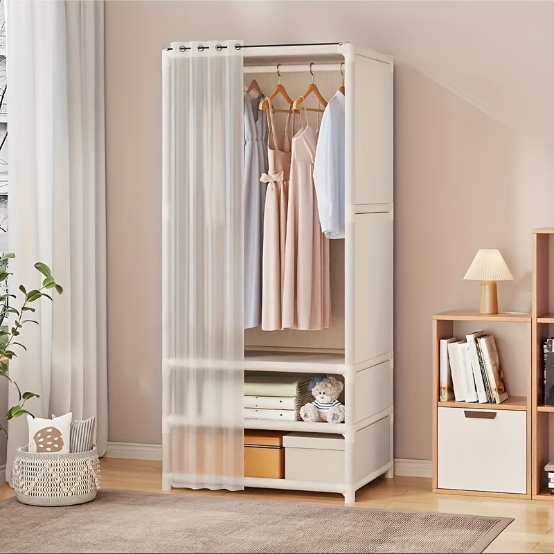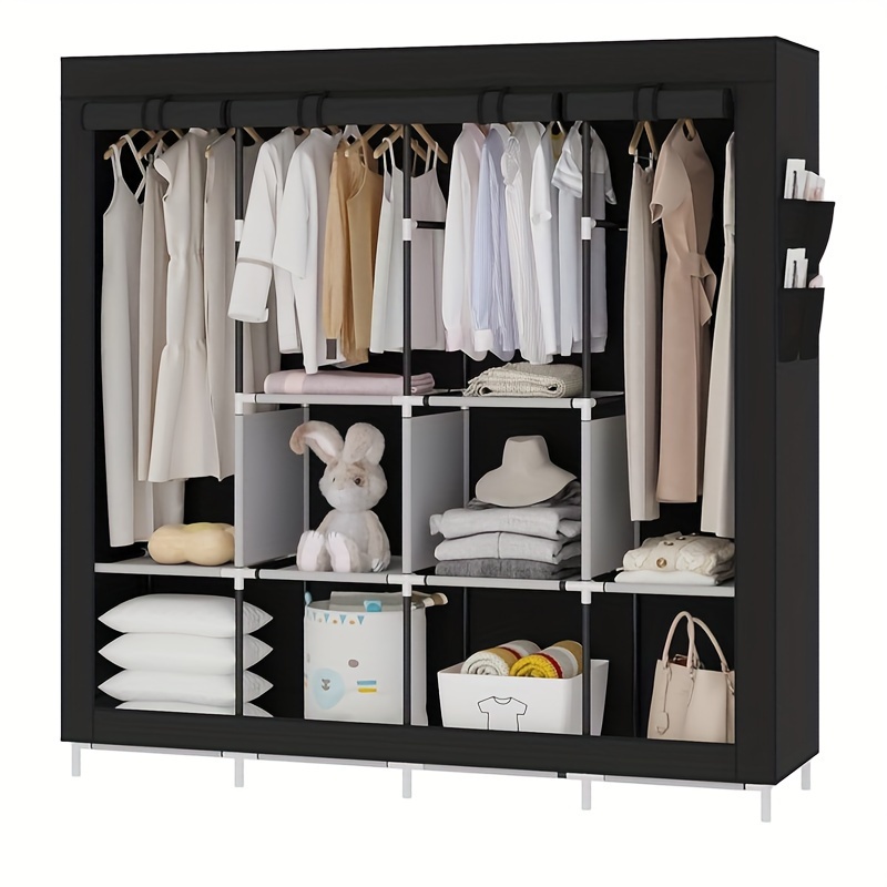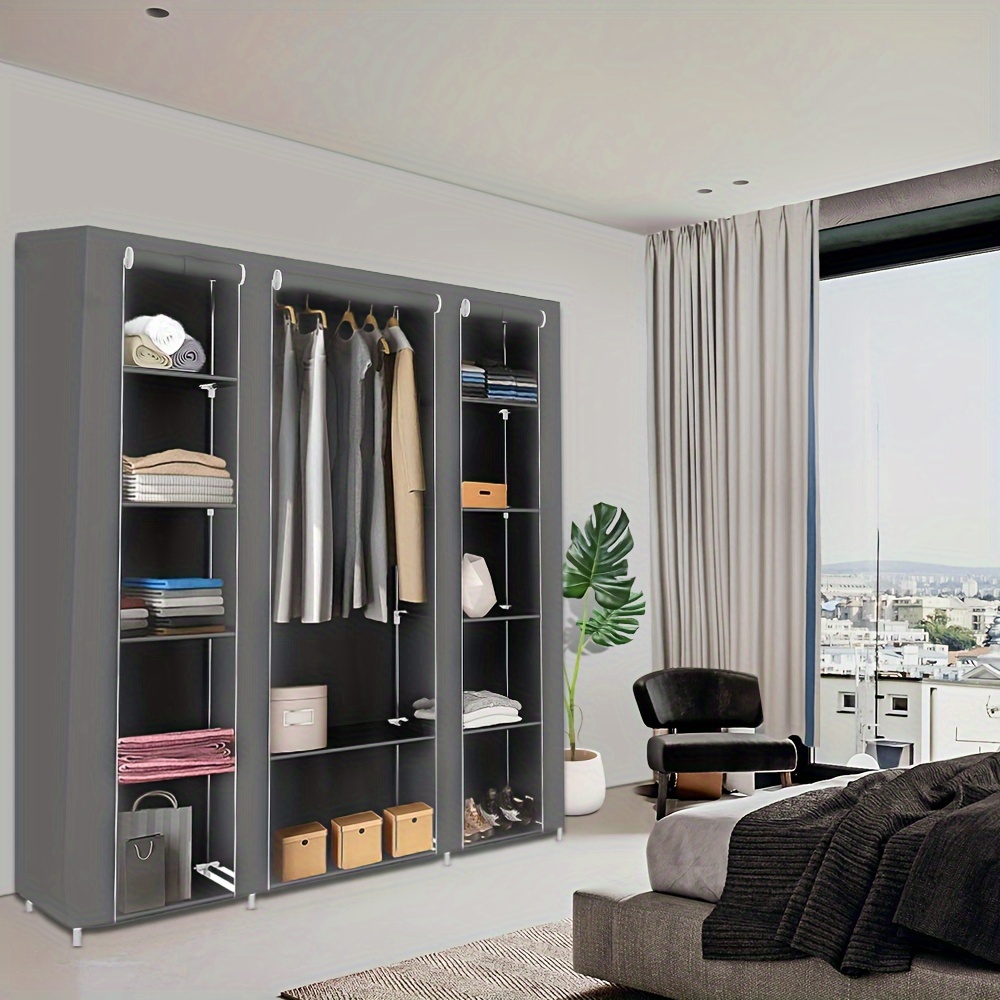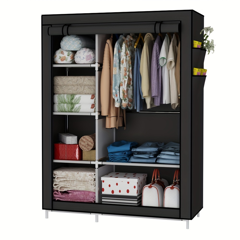 TEMU Non-woven Folding Wardrobe, 6 Compartments, With Zipper, Dustproof, 178cm Clothes Storage Organizer, Clothes Hanger, Brown, Adult And 's Bedroom Clothes Changing Wardrobe, Portable Closets