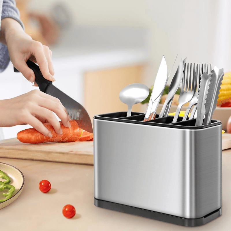 TEMU Organizer For Storing Kitchen Utensils Such As Spoons, Forks, And Cutlery In A Rack Stand With A Drainer