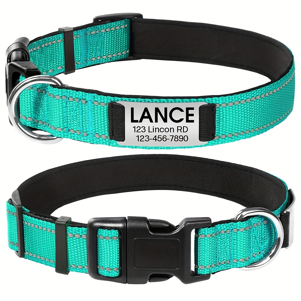 TEMU Personalized Dog Collars, Customized Reflective Dog Collars, Custom Reflective Dog Collar With Name Plate, Pet Collars With Engraved Slide On Id Tags For Small Medium Large Dogs