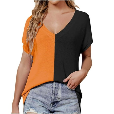 ZyeKqe Sweaters for Women Short Sleeve Knit Pullov...