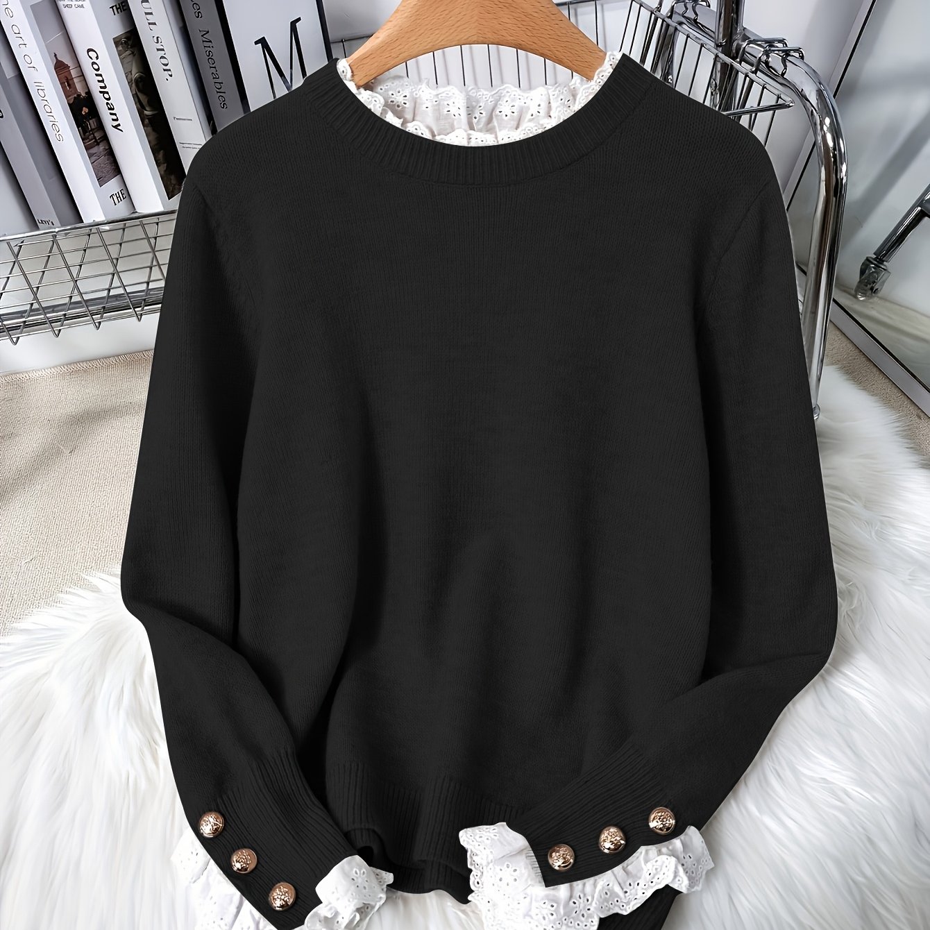 TEMU Eleganter Damen-Strickpullover mit Spitzenbes...
