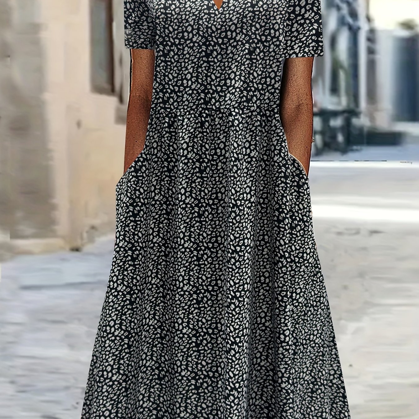 Product information for TEMU Plus Size Colorful Print V Neck Dress, Casual Short Sleeve Dress For , Women's Plus Size Clothing