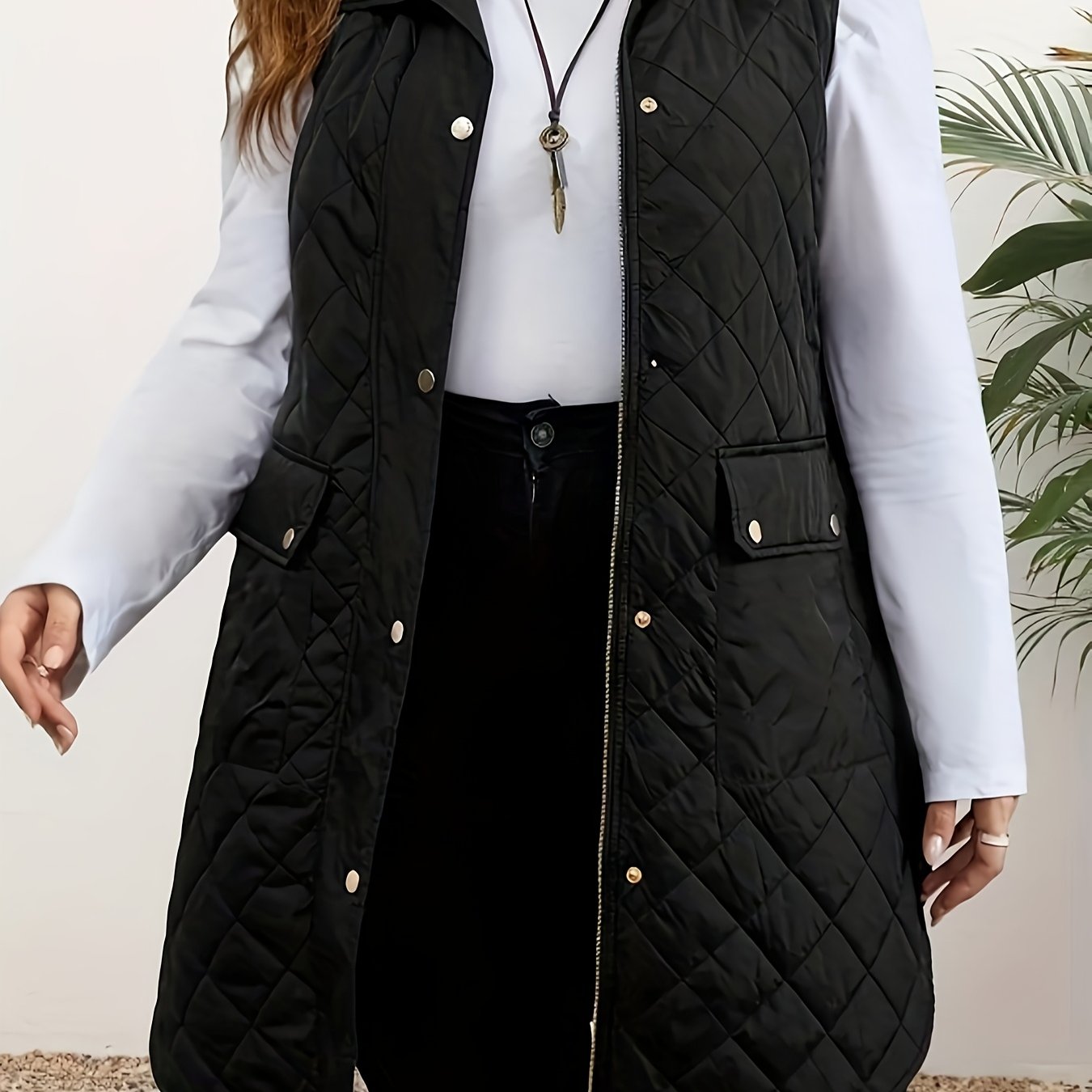Product information for TEMU Plus Size Leopard Print Vest J506 - Elegant Round Neck Mid-length Sleeveless Top, 100% Polyester Machine Washable For Casual & Formal Outfits