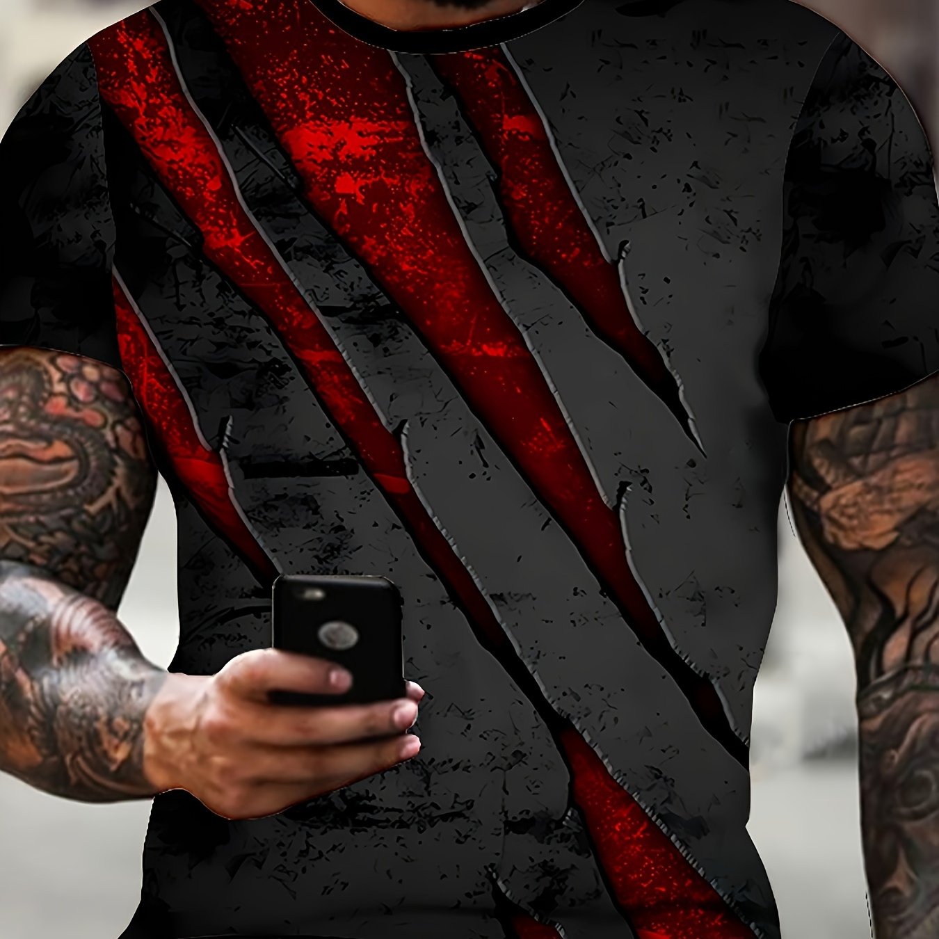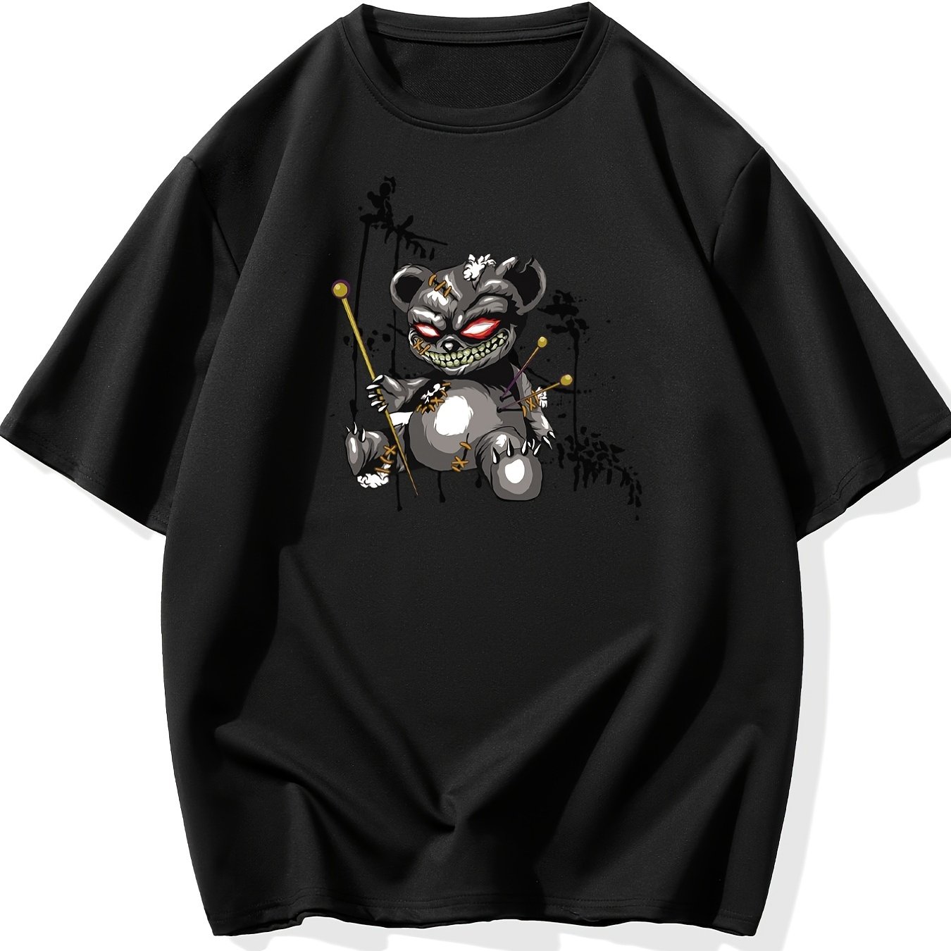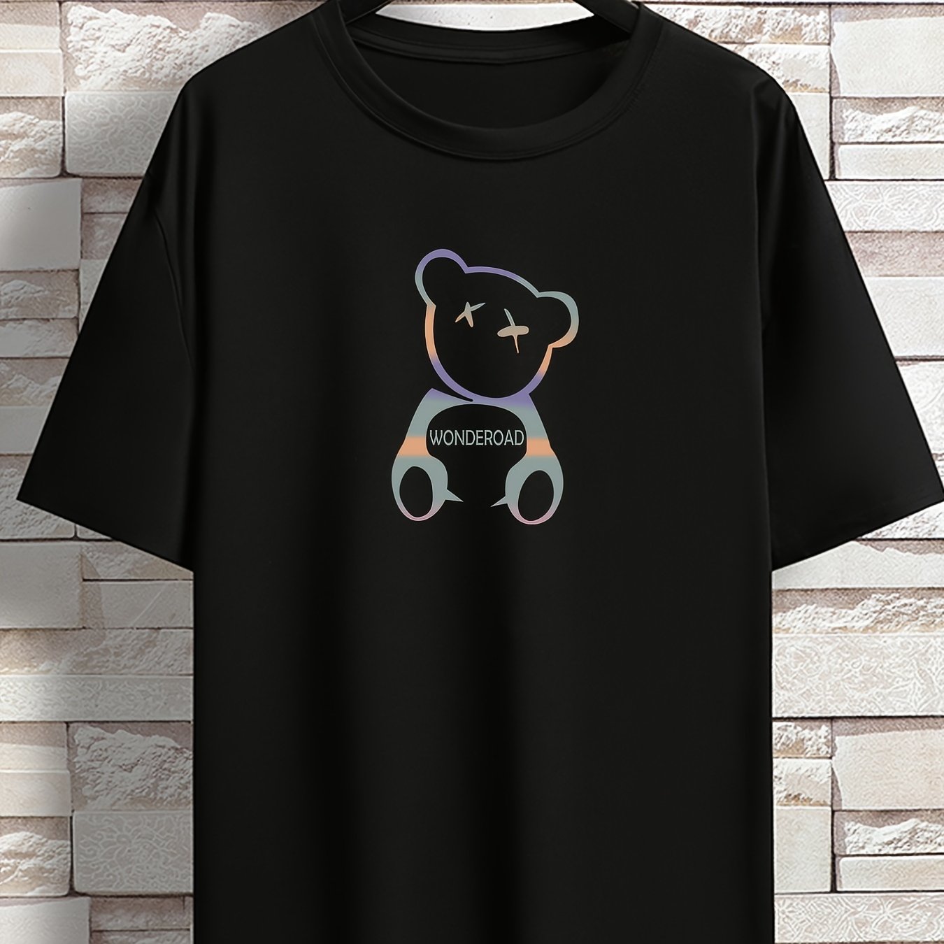 TEMU Plus Size Men's Bear T-shirt For Summer, Casual Fashion Short Sleeve Tees For Outdoor