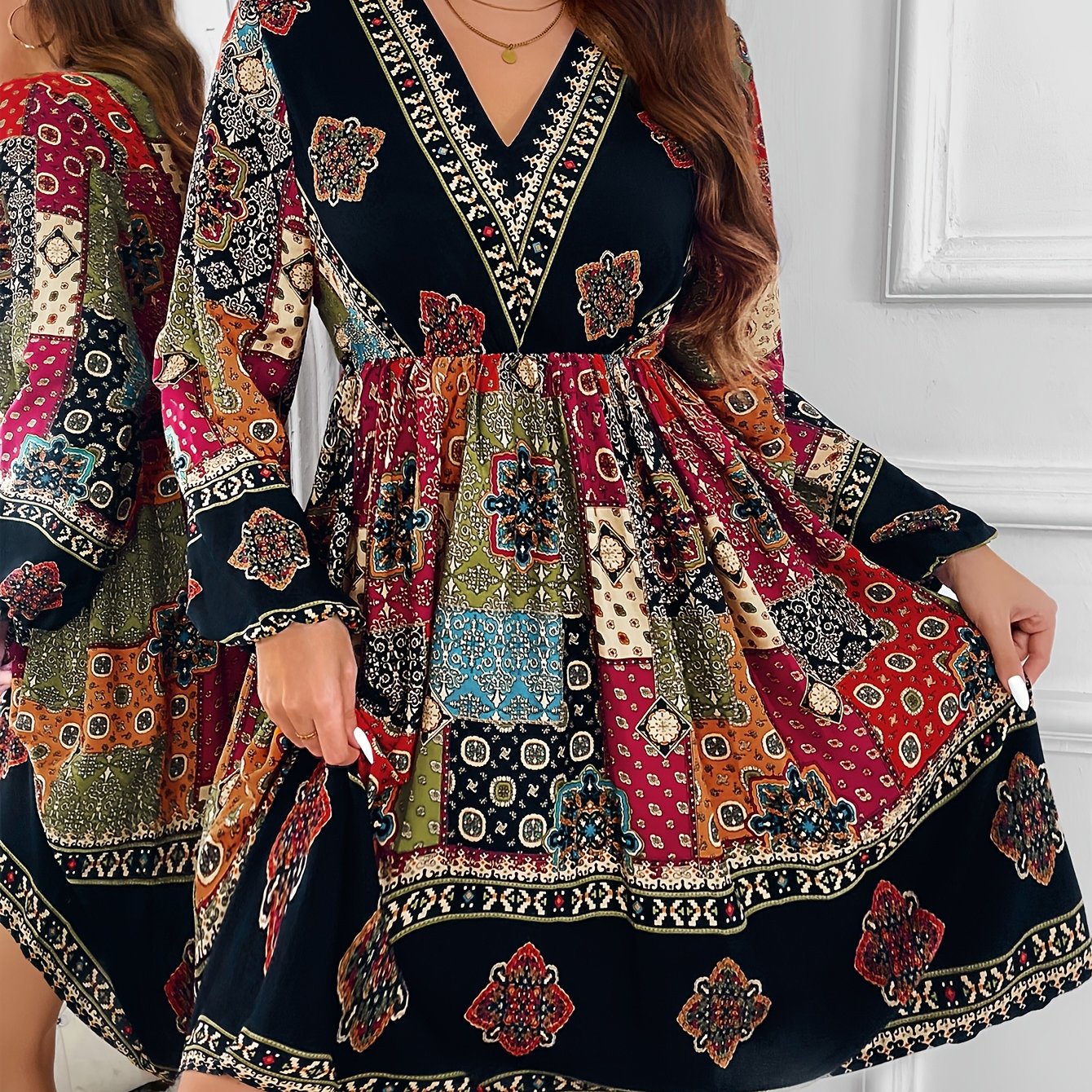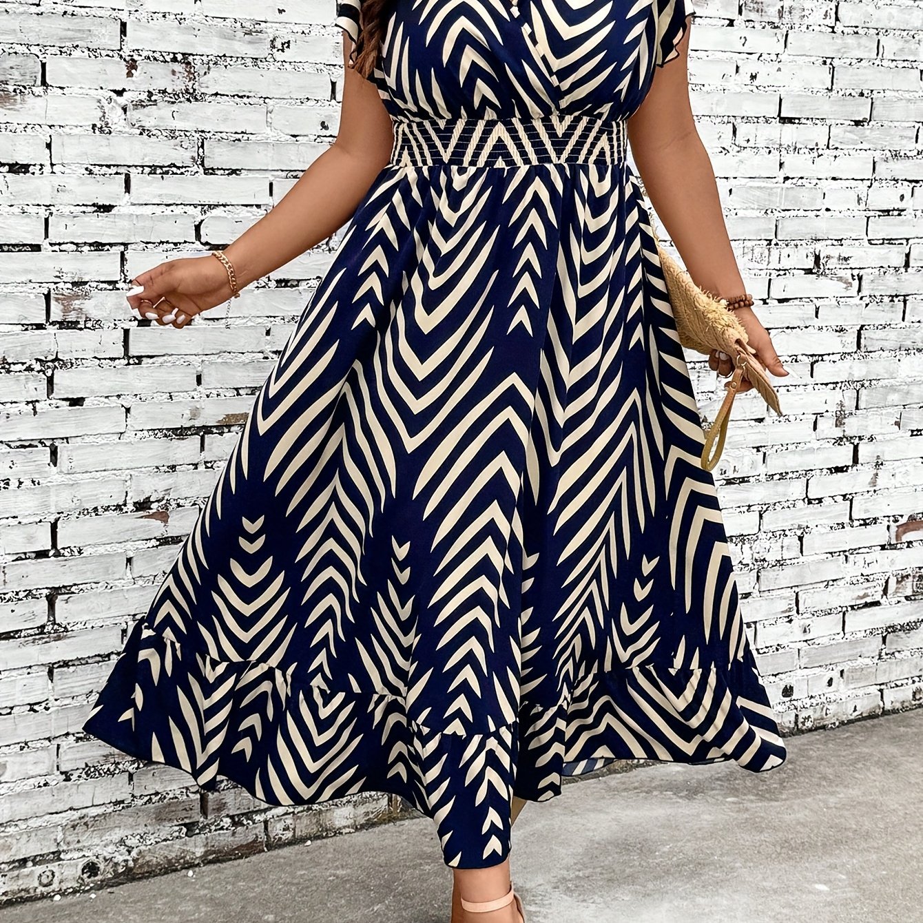 TEMU Plus Size - Plus Size Women's Elegant V-neck Leopard Print Maxi Dress - Short Sleeve, Tie Waist, Dress With Leopard Print Top & Black Skirt, Casual Outing Attire, Leopard Print Dress