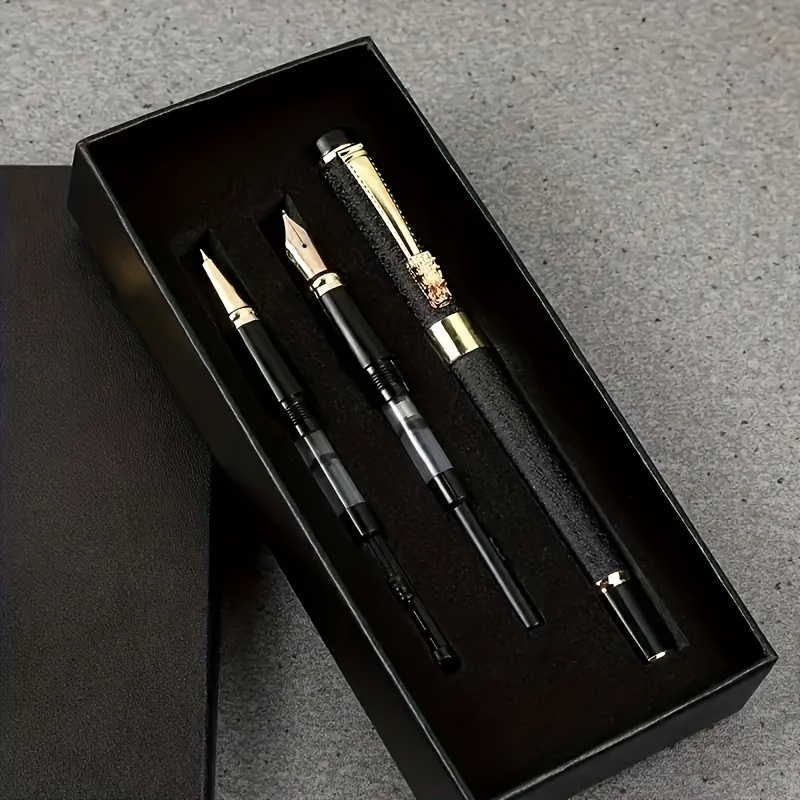TEMU Premium Metal Fountain Pen, 0.5mm Fine Nib, Closure - Ideal For Business & Personal Signature, Compatible With 3.4mm Ink Bottles