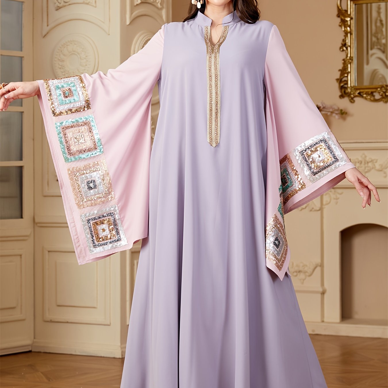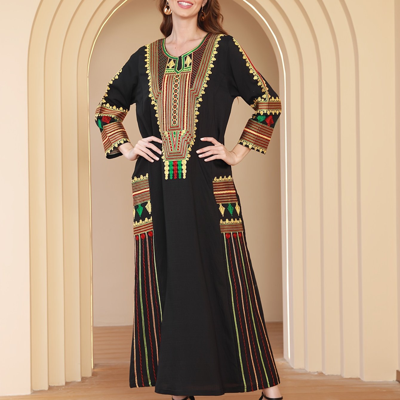 Product information for TEMU Robe Kaftan Verte Élégante Grande Taille avec Broderie Dorée - Style Moyen-Oriental, Manches Longues, Coupe Maxi Jalabiya Abaya pour Femmes
