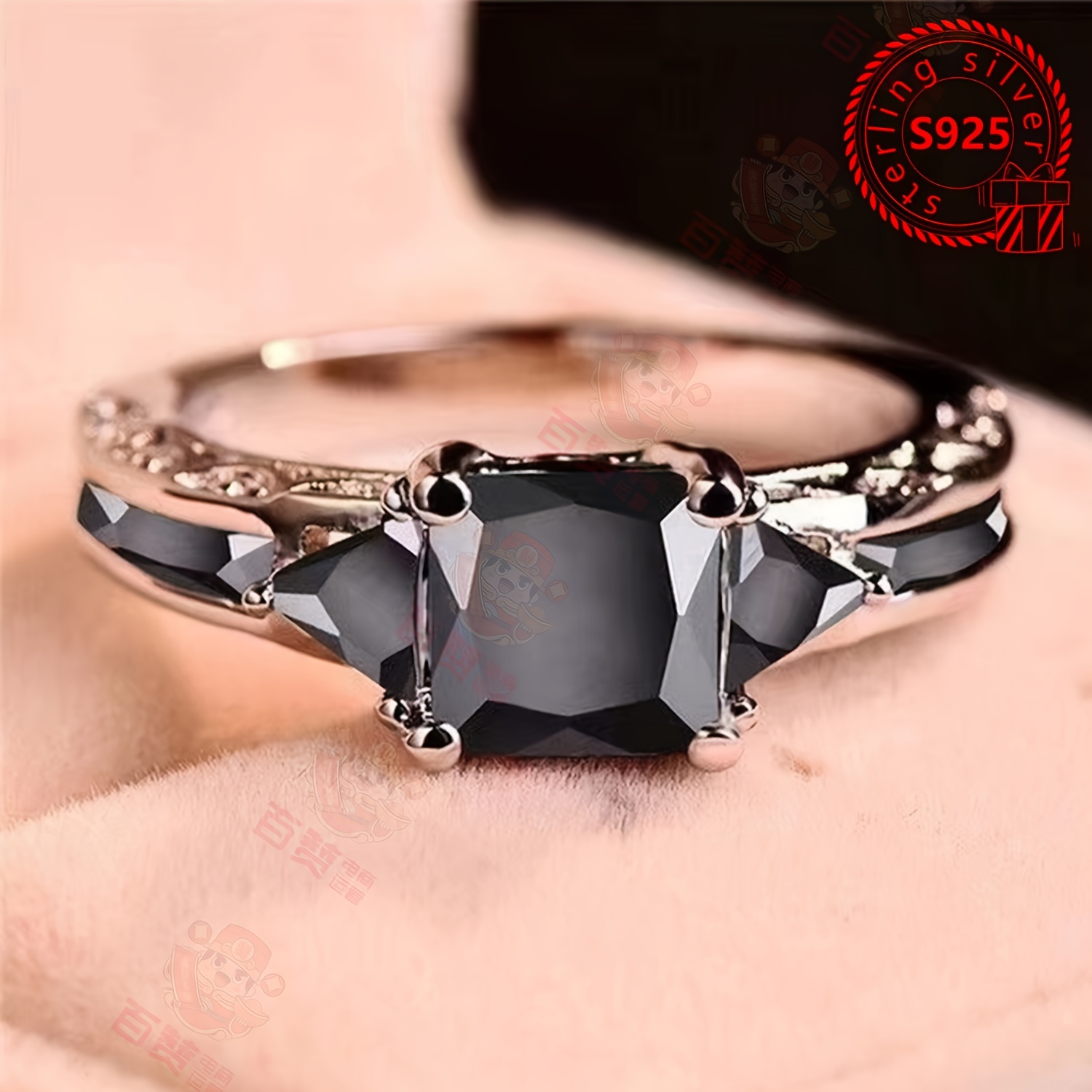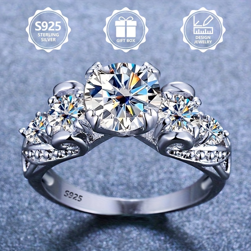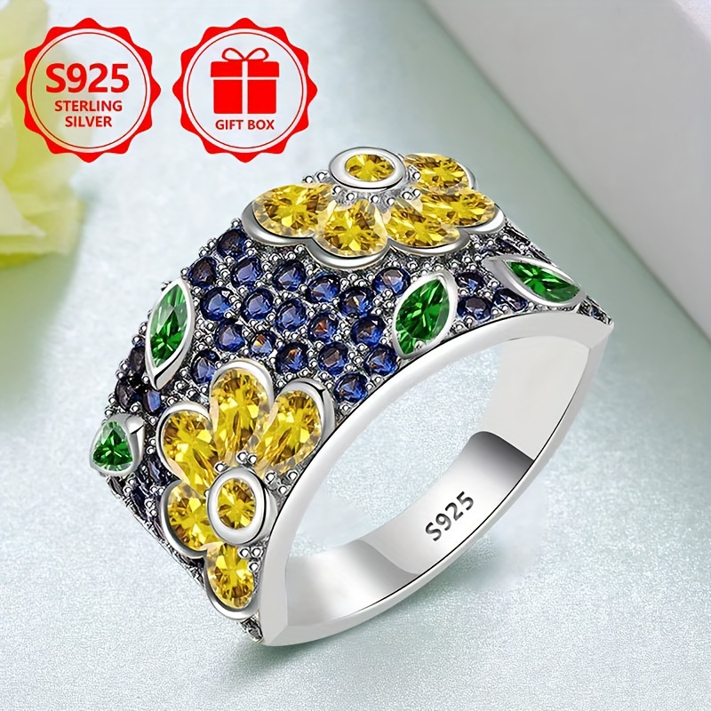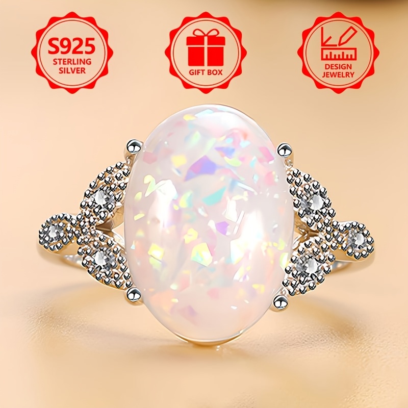 TEMU خاتم نسائي فاخر من الفضة الإسترليني S925 بتصميم زهرة الورد وأحجار حمراء بيضاوية بأربعة أسنان