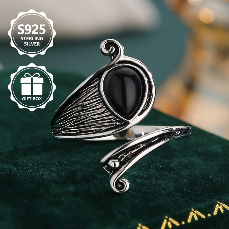 Product information for TEMU خاتم نسائي فاخر من الفضة الإسترليني S925 بتصميم زهرة الورد وأحجار حمراء بيضاوية بأربعة أسنان