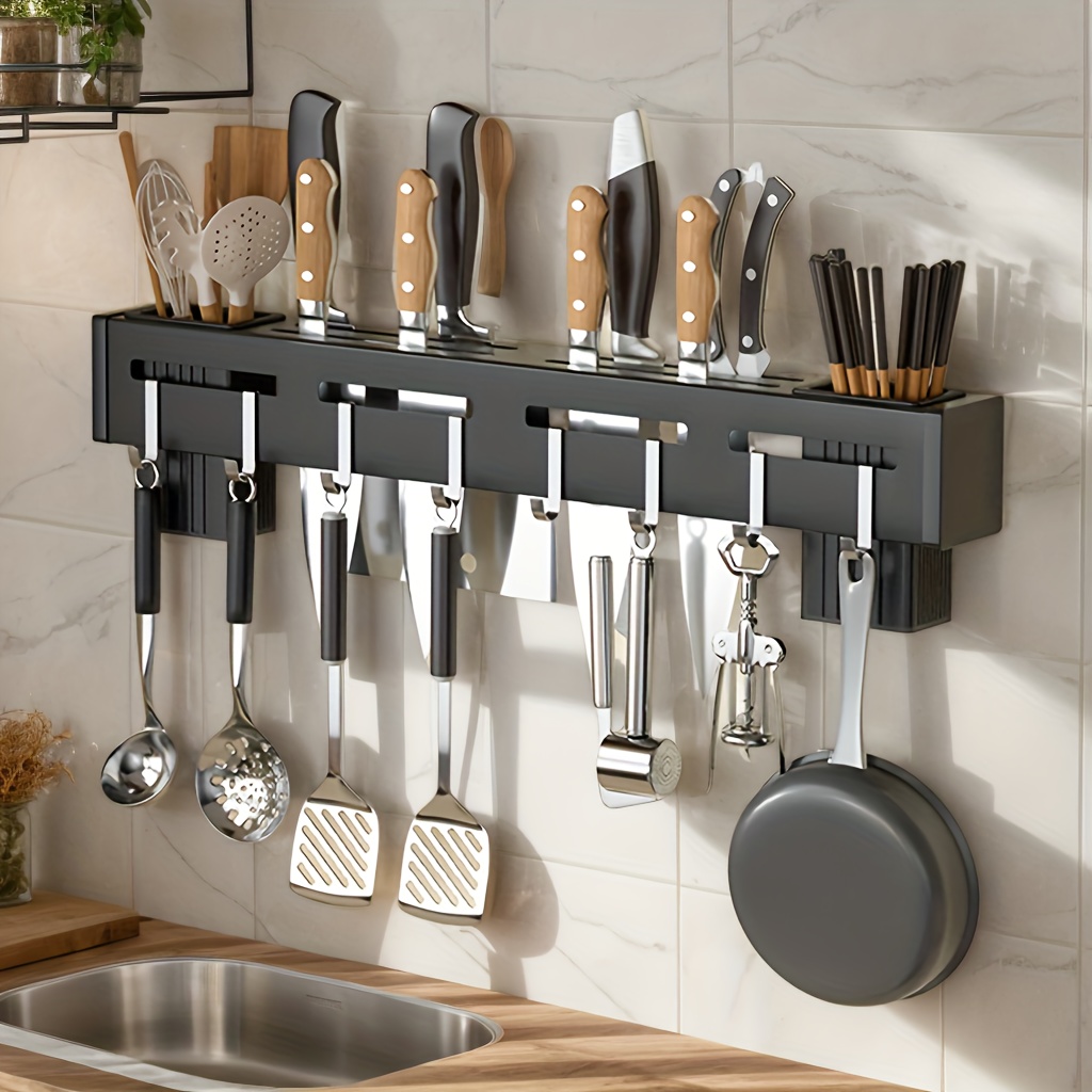 Product information for TEMU Safe Universal Knife Holder, 3-in-1, 2-in-1kitchen Utensil Holder, Empty Knife , Large Kitchen Tools Flatware Holder Organized Utensil Drying Cylinder, Black