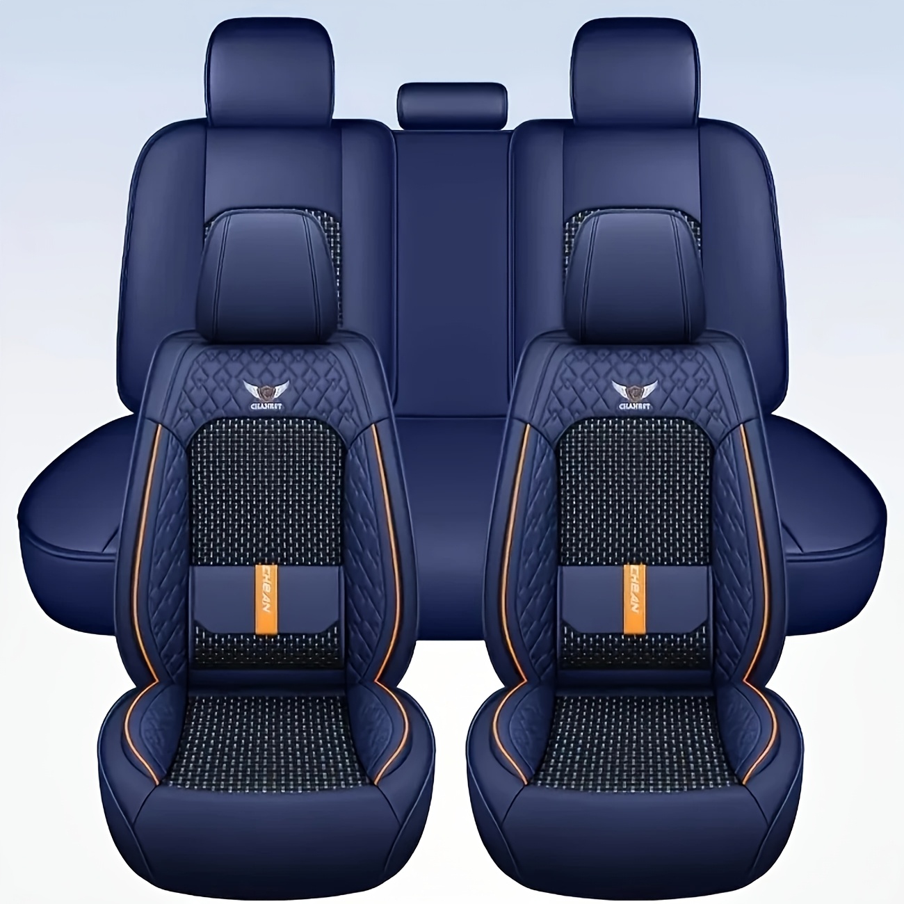TEMU Seametal Universal Fit Leather Car Seat Covers, Front & Rear Cushion Protectors With Sponge Filling, Non-textile Weaving, Hand Wash/ - Auto Seat Protection With Security Buckle & Leggings Design