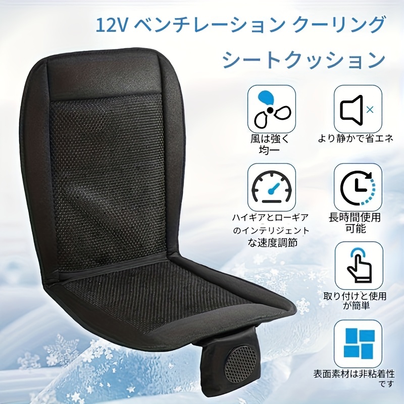 TEMU 12V 車用クッション EVA 通気性シートパッド 調節可能ファン&機能付き 夏の冷却マッ...