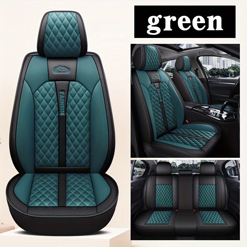 Product information for TEMU Seametal Universal Fit Leather Car Seat Covers, Front & Rear Cushion Protectors With Sponge Filling, Non-textile Weaving, Hand Wash/ - Auto Seat Protection With Security Buckle & Leggings Design
