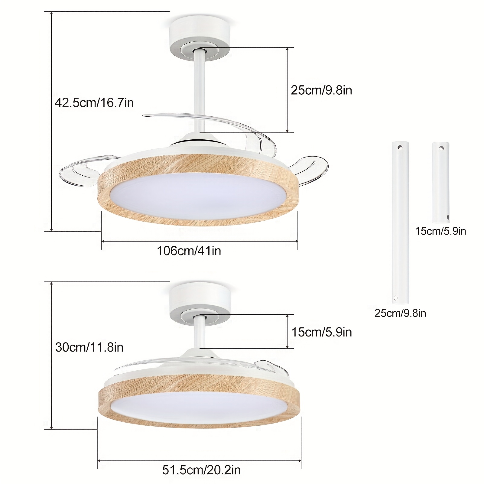 TEMU Ventilador de techo con luz, luz de techo inv...