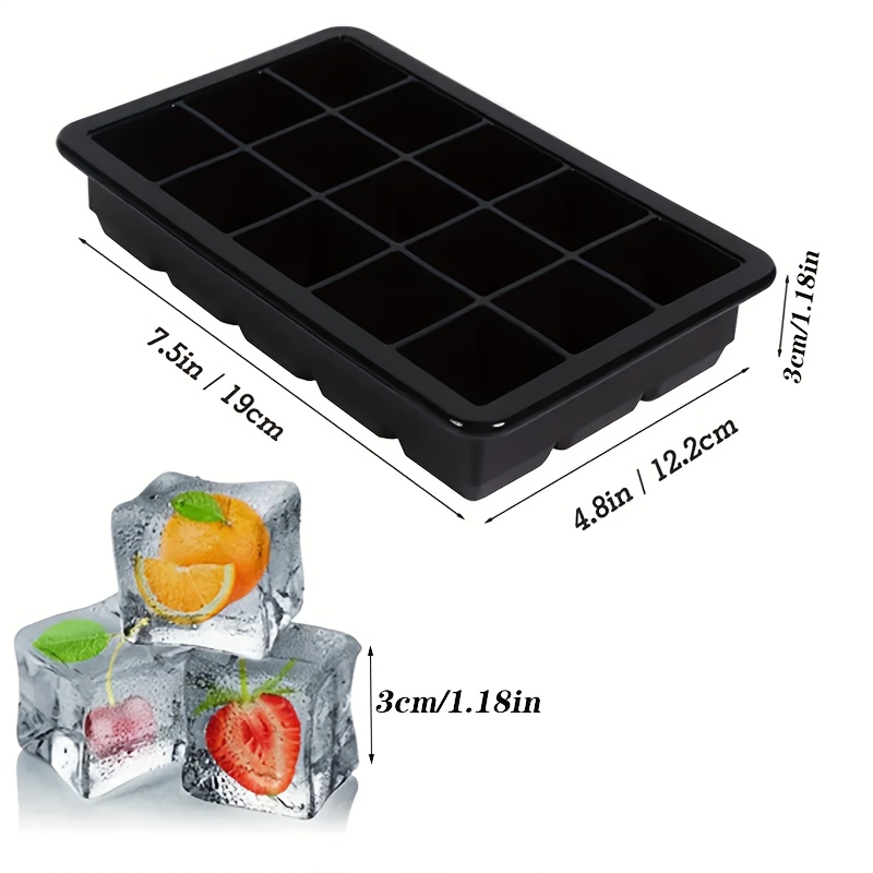 TEMU Silicone Ice Cube Trays, With Each Tray Easily Release 15 Cubes Of Ice, Reused Flexiblely, Suitable For Refrigerator, Whiskey, Chocolate, Baby Food, Juice