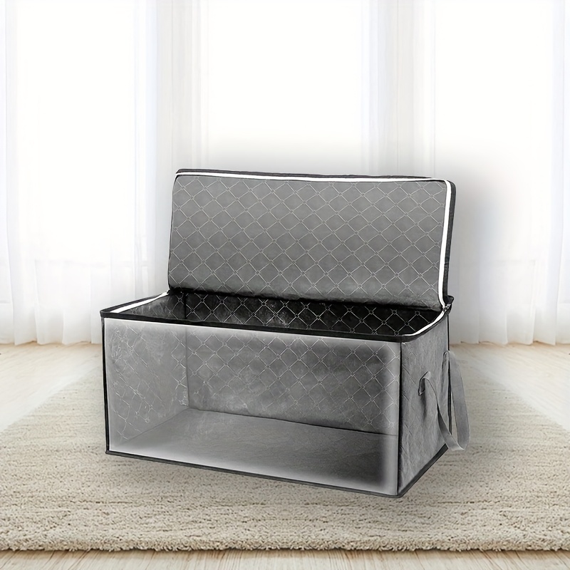 TEMU Simple Zipper Underbed Storage Bag, Foldable Organizer With Window, Lightweight Clothes Container With Handles
