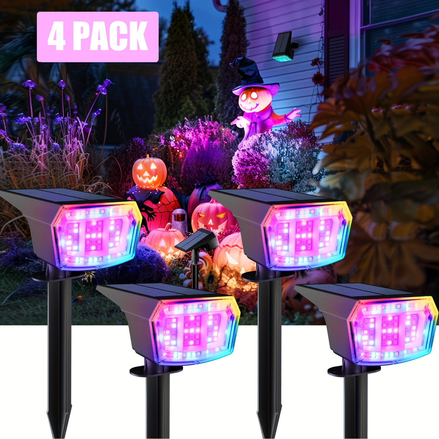 TEMU Solar Spotlight With 9 Led, Colorful/white Outdoor Garden And Lawn Lamp, , Semi-flush Mount, Detachable, Plastic Material, Solar-powered, For Wall, Stairs, Patio, Yard, Pool