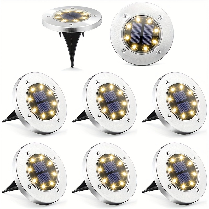 Product information for TEMU Solar Underground Lights, 12 Outdoor 8 Led Street Lights, Patio, Lawn, Ground Lights, Warm Colour Underground Lights Lamps