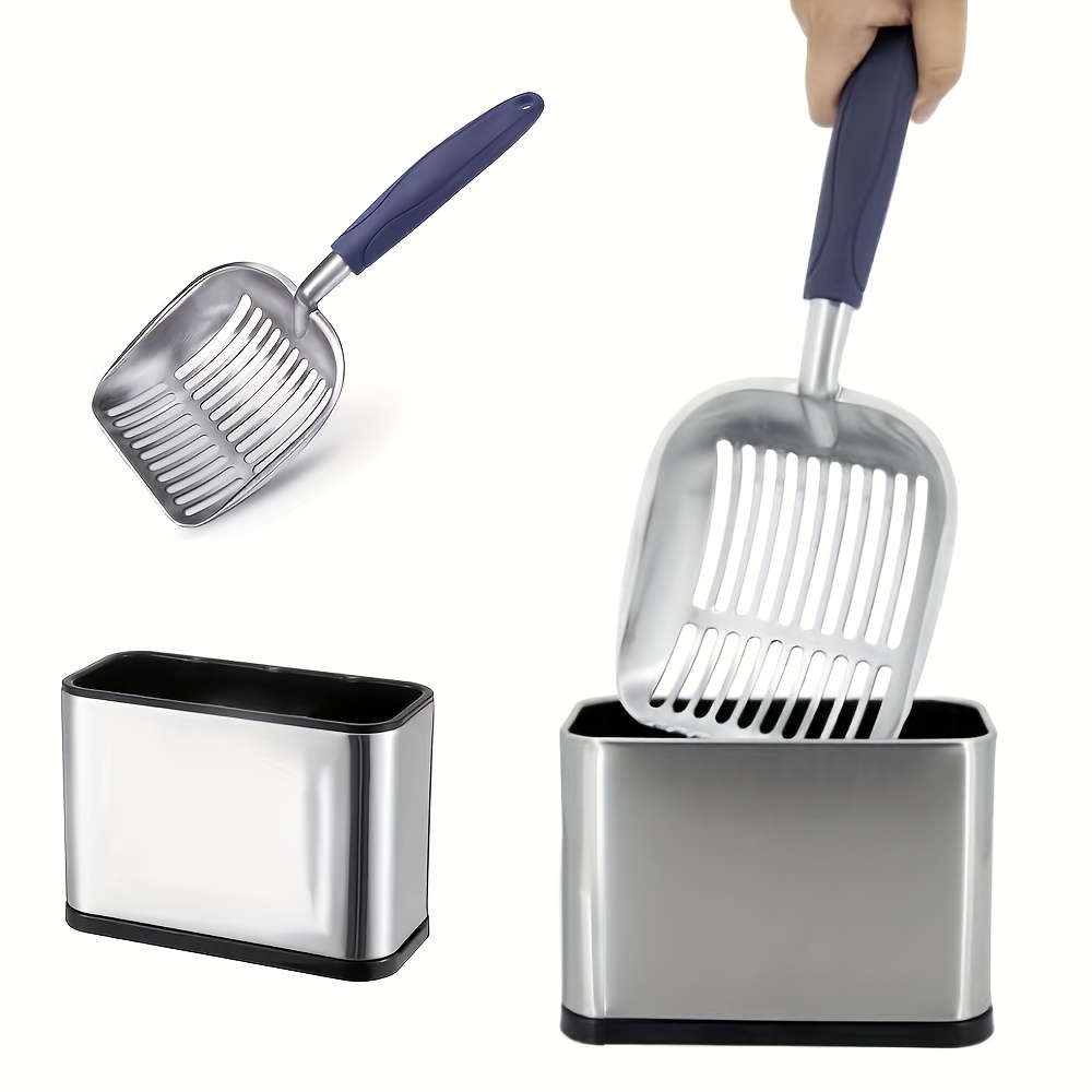 TEMU Stainless Steel Large Cat Leak-proof Fine Mesh Thickened Long Handle Durable Cat Litter Sifter Suitable For Clay/tofu Sand Efficient Filter Anti-slip Handle