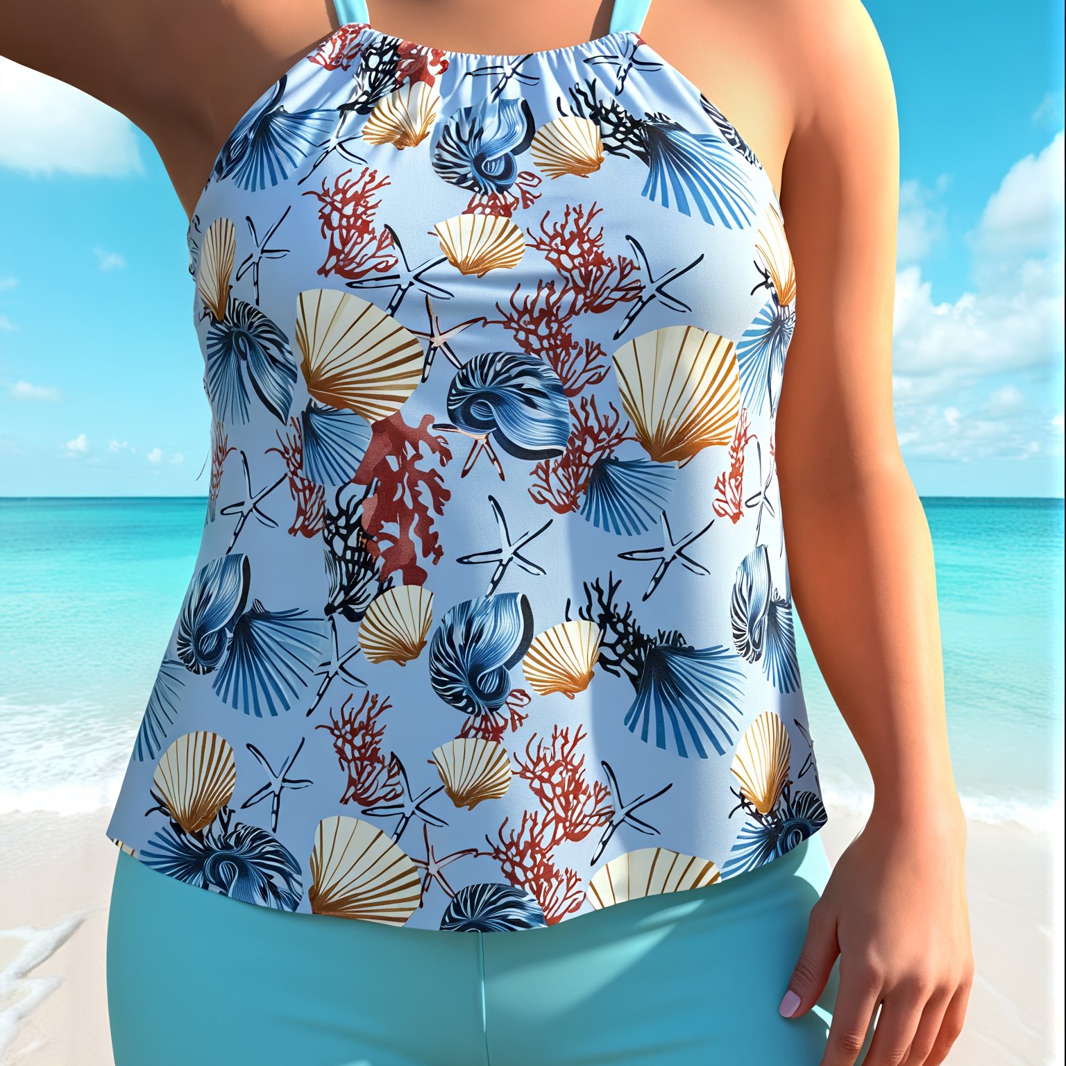 TEMU Tankini Vest Print And Solid Color Spliced Thong European Women's Swimsuit