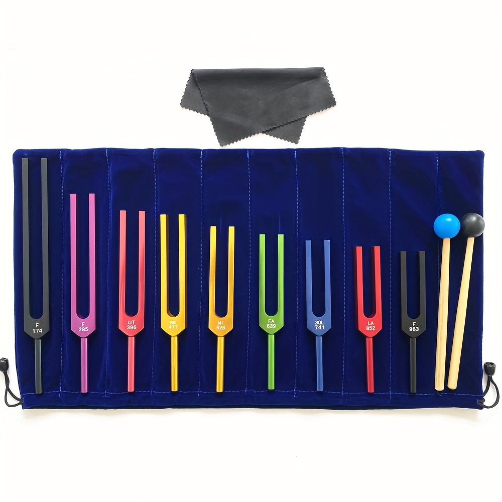 Product information for TEMU Three-piece Aluminum Sound Fork Set-128hz, , 512hz, 256hz With Wooden Hammer Sound Fork Activation Block Yoga Frequency Relaxation Device