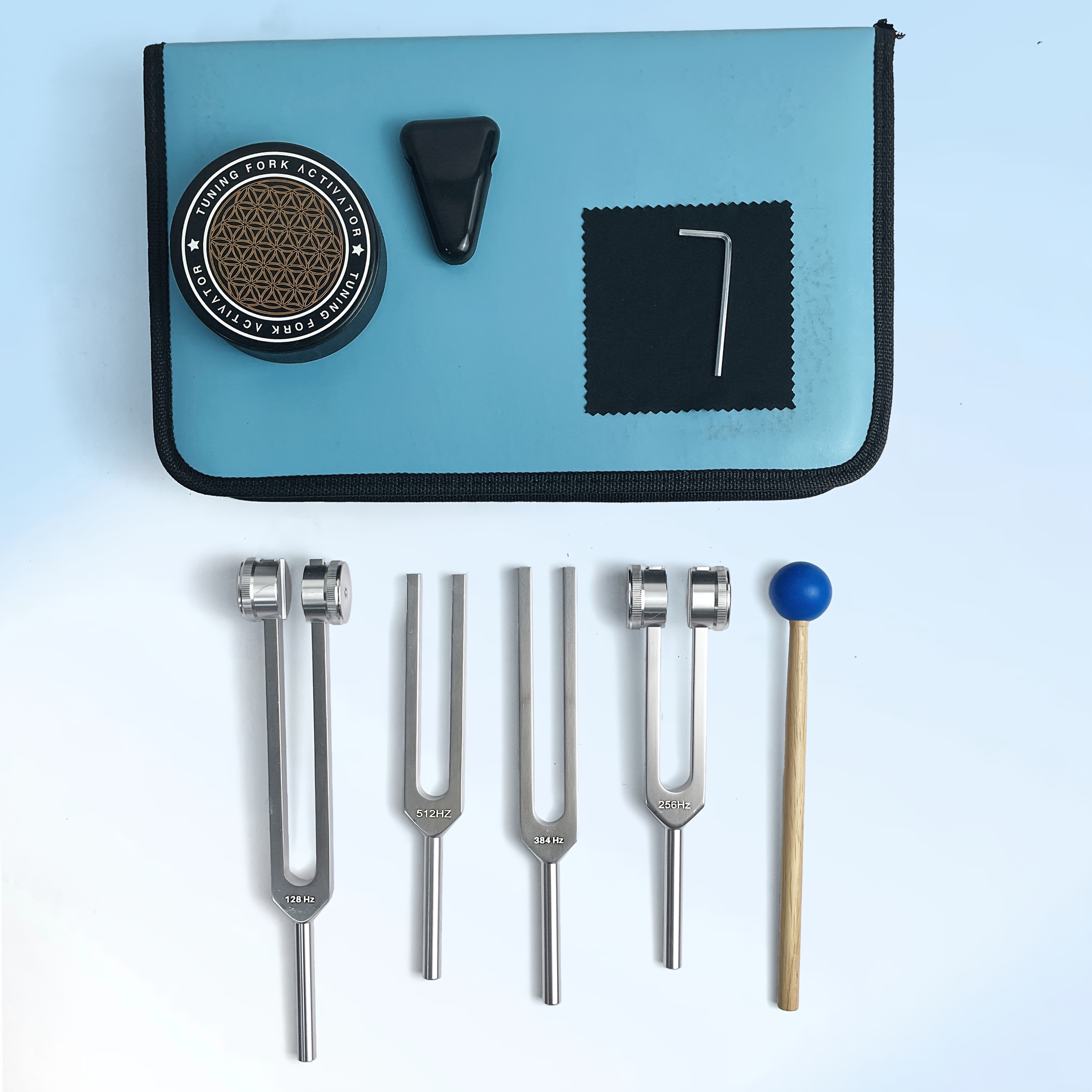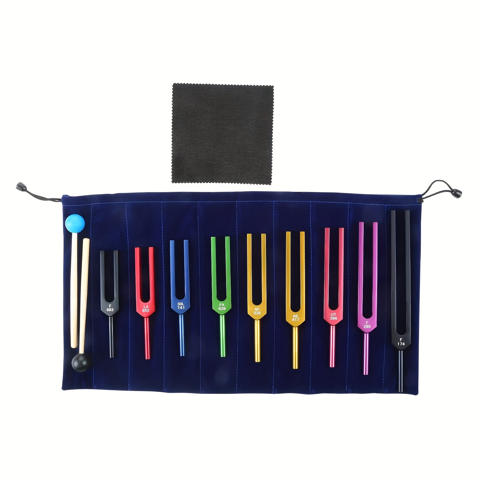 TEMU Three-piece Aluminum Sound Fork Set-128hz, , 512hz, 256hz With Wooden Hammer Sound Fork Activation Block Yoga Frequency Relaxation Device