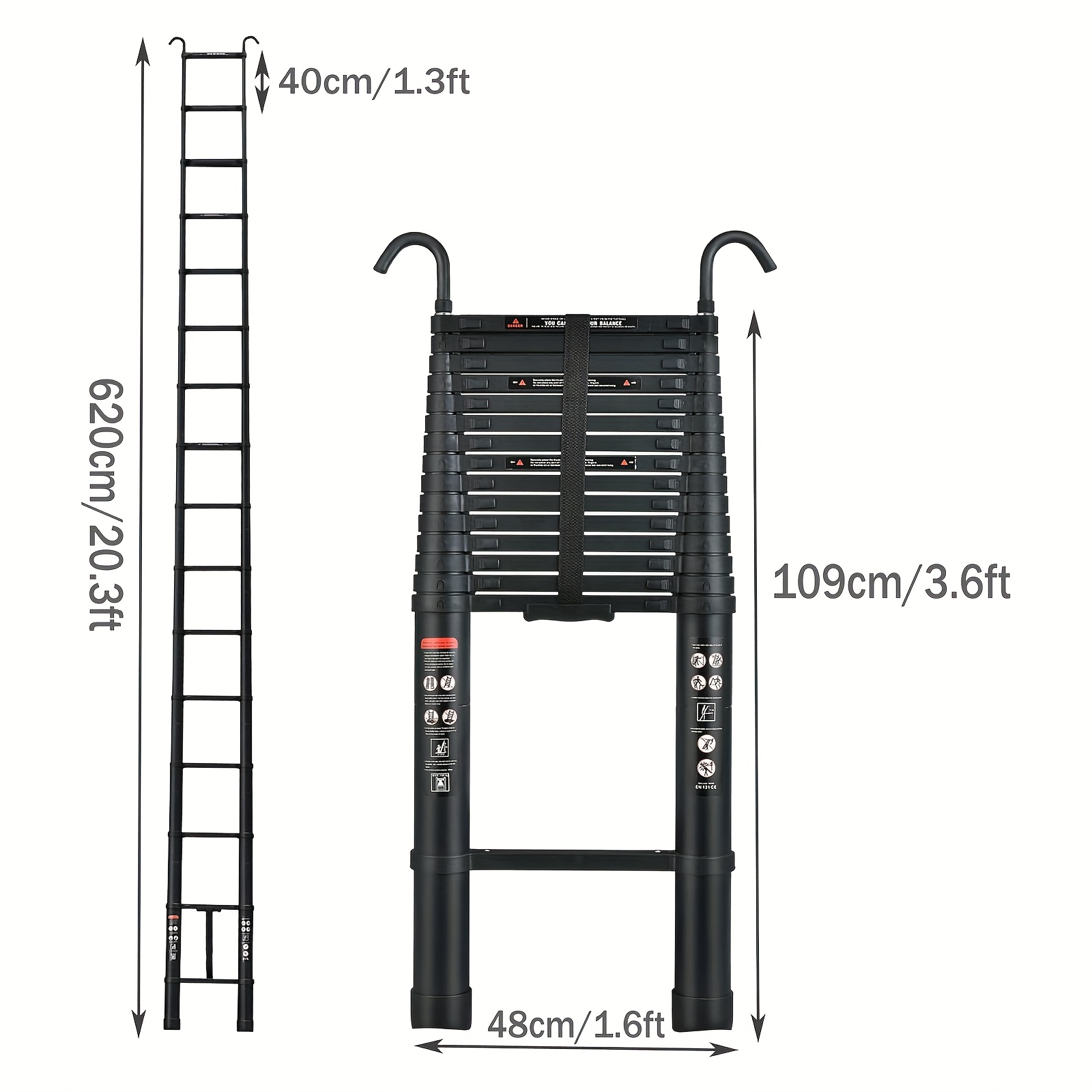 Product information for TEMU Una escalera versátil que se puede extender 5 metros (2.5 metros + 2.5 metros), para usar como escalera de tijera, escalera simple, escalera plegable o escalera multiusos.