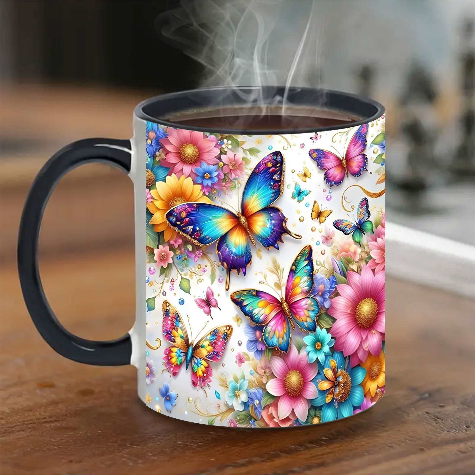TEMU Unique Hand-painted Strawberry & Floral Ceramic Mug - Reusable, High-quality Coffee Cup With , Breakfast, Afternoon Tea | Valentine's Day Gift, Coffee Bar Accessories