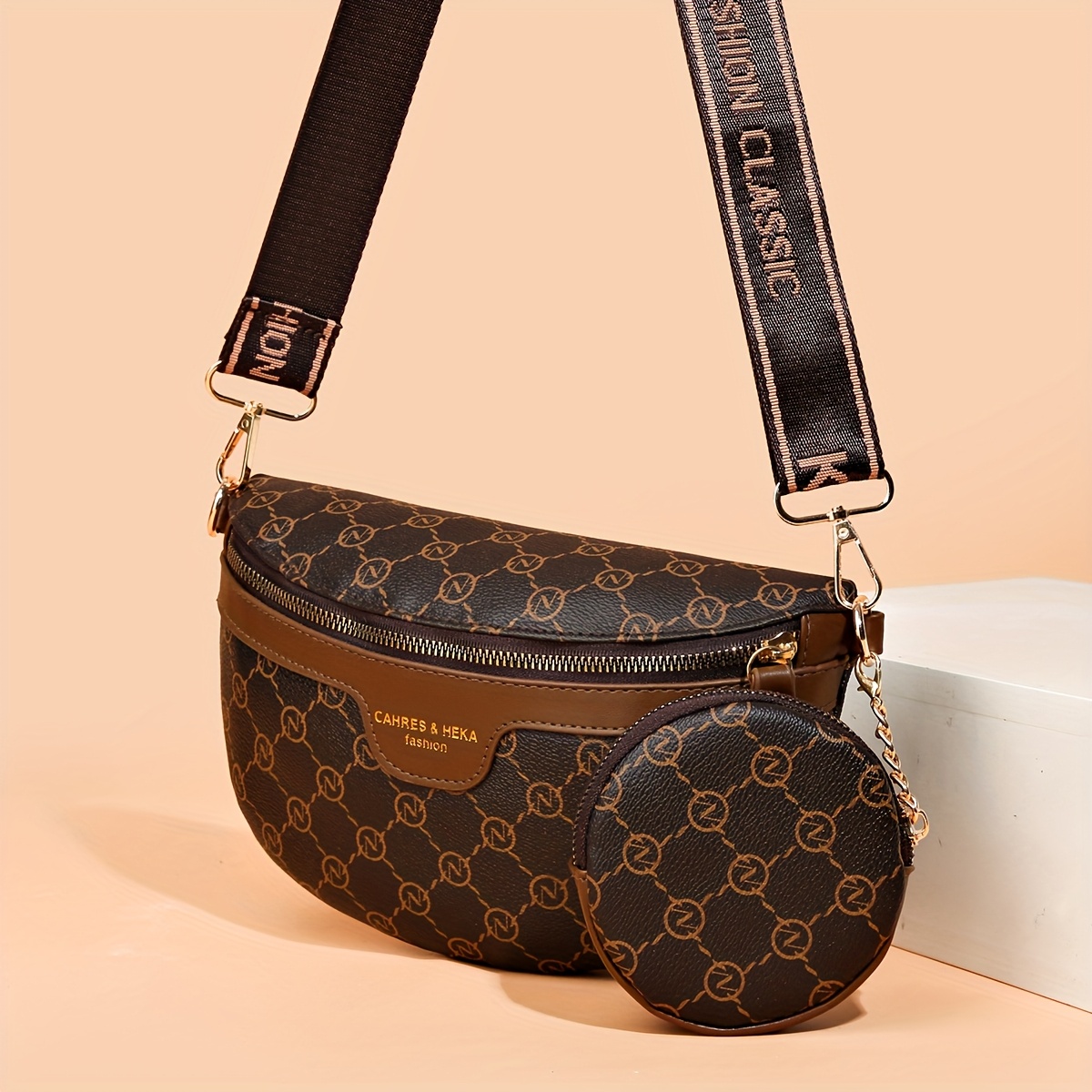 Product information for TEMU Unisex Lightweight Nylon Waist Bag - Stylish Black Casual Crossbody & Chest Bag With Adjustable Strap, Zipper Closure, And "fashion " Print, Everyday Use