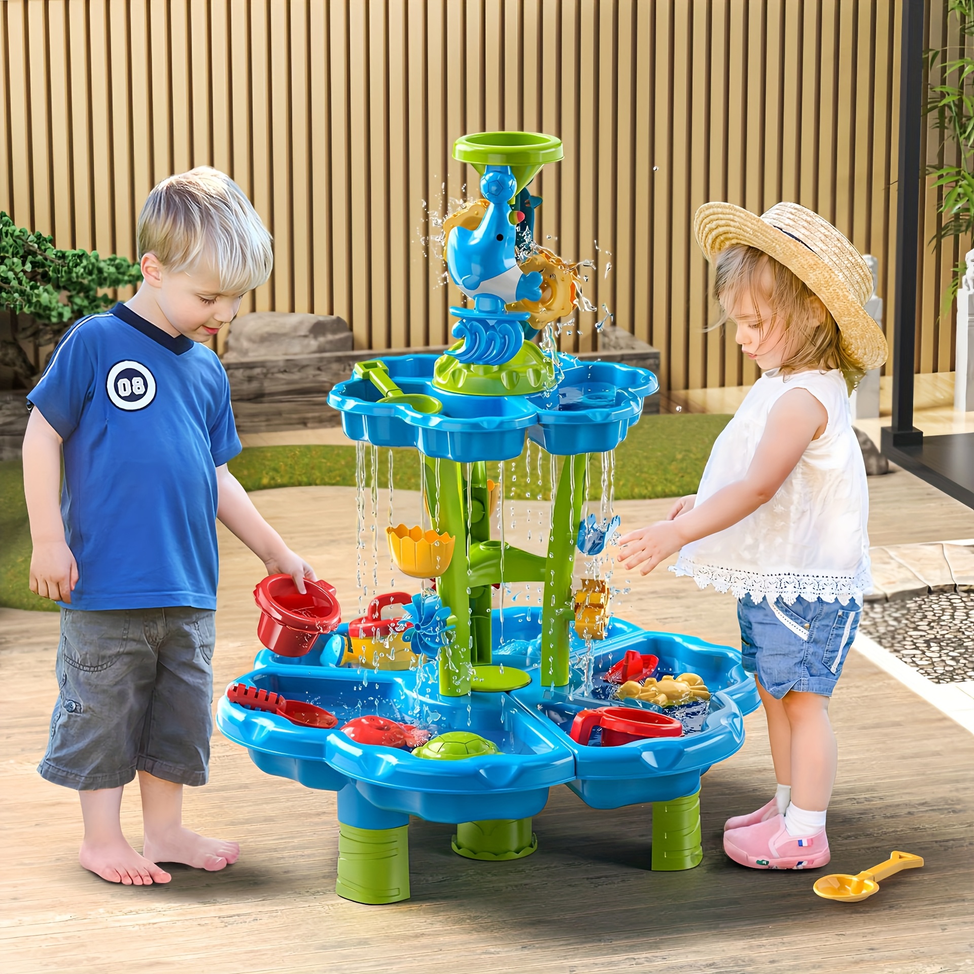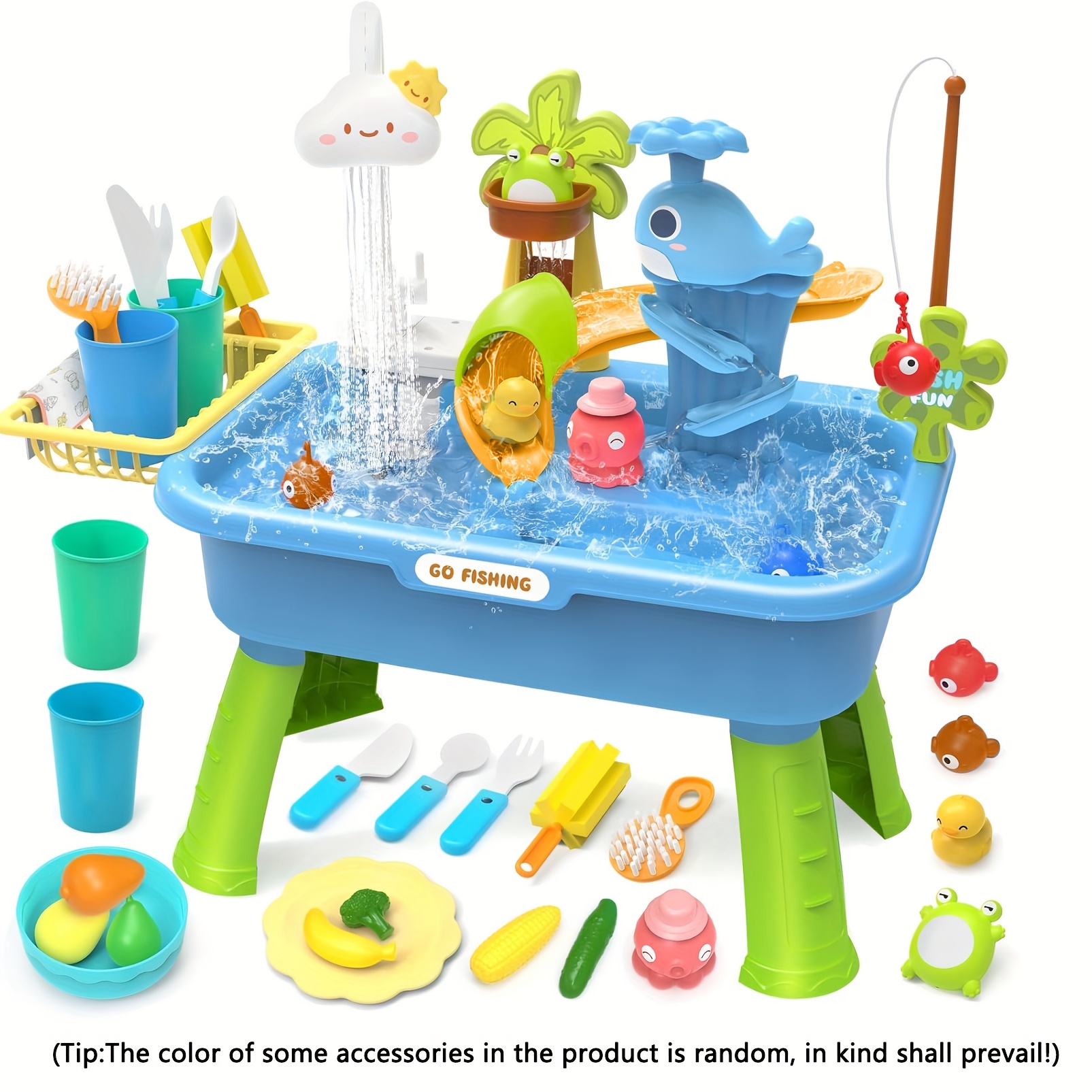 TEMU Water Table For Kids Ages 2+ With Pump, Sensory Tables With Play Vegetables, Tableware & Fishing Game, Outdoor Toy Summer Beach For Boys Girls Age 2+