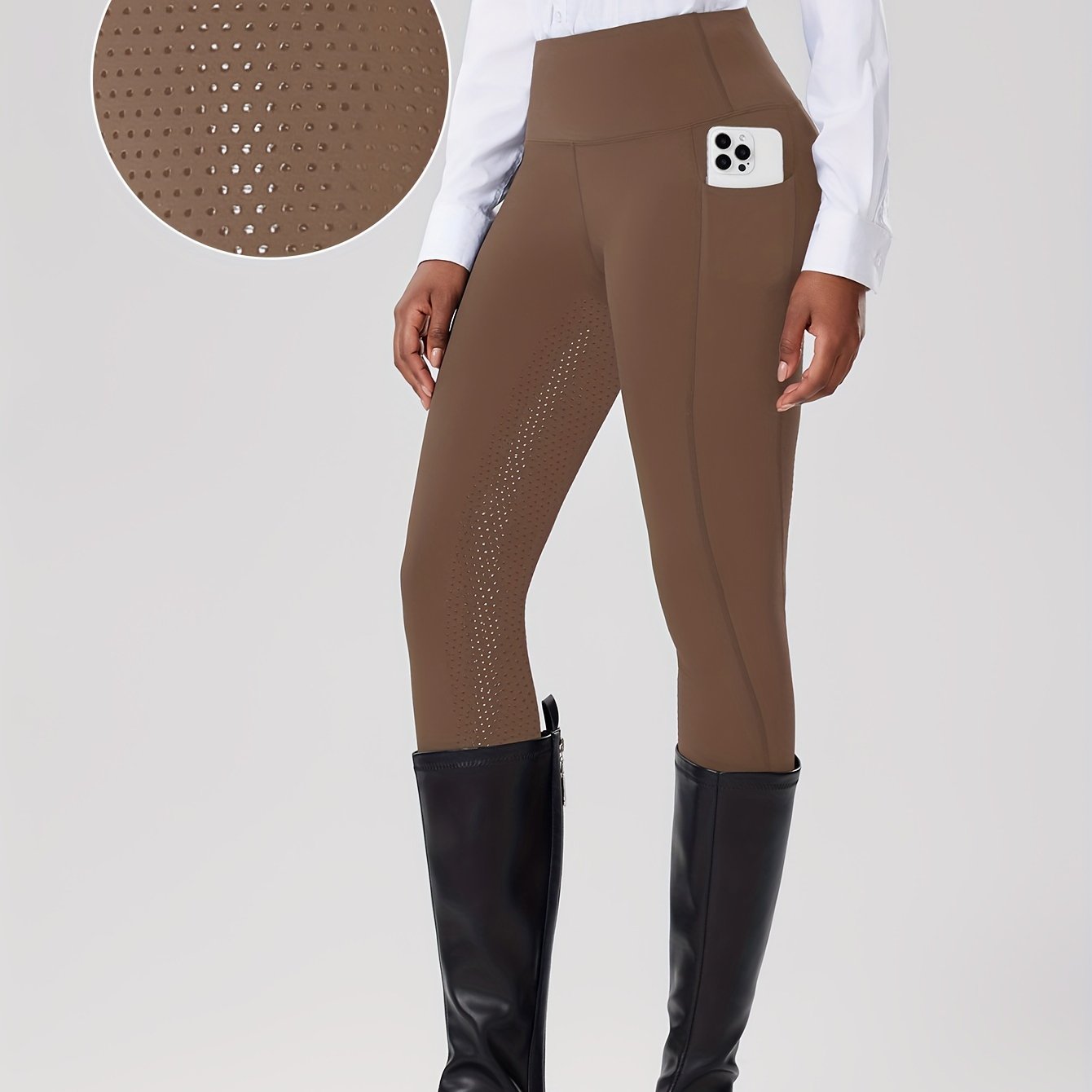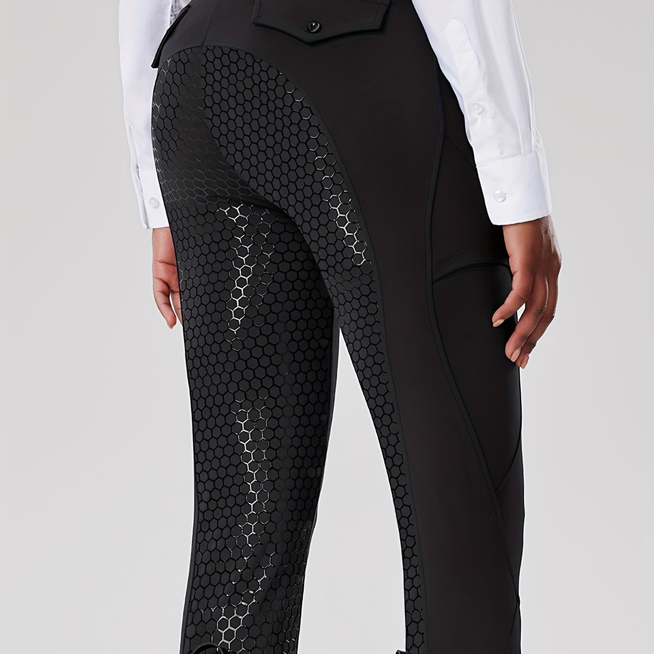 TEMU Women's Black Equestrian Pants With Pockets - Full Seat, Silicone Anti-slip Grip, Quick-dry & Stretchy Polyester/spandex Blend, Geometric Pattern - Riding & Cycling, Horse Accessories