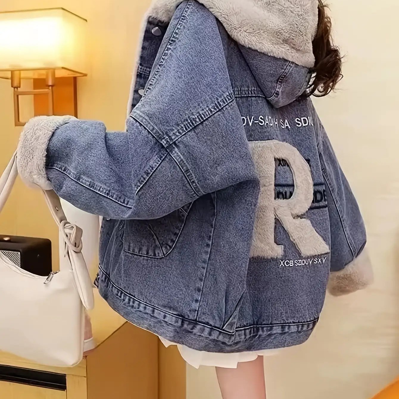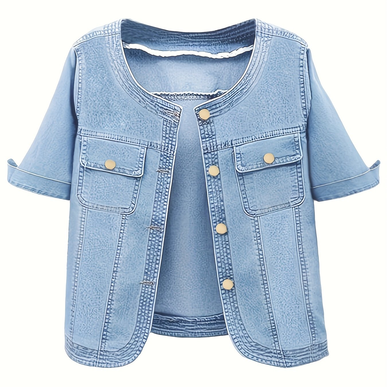 TEMU [] Women's Elegant Blue Denim-style Casual Shirt - Polyester, Button-up With Turn-down Collar And Chest Pockets, Machine Washable, Spring/summer