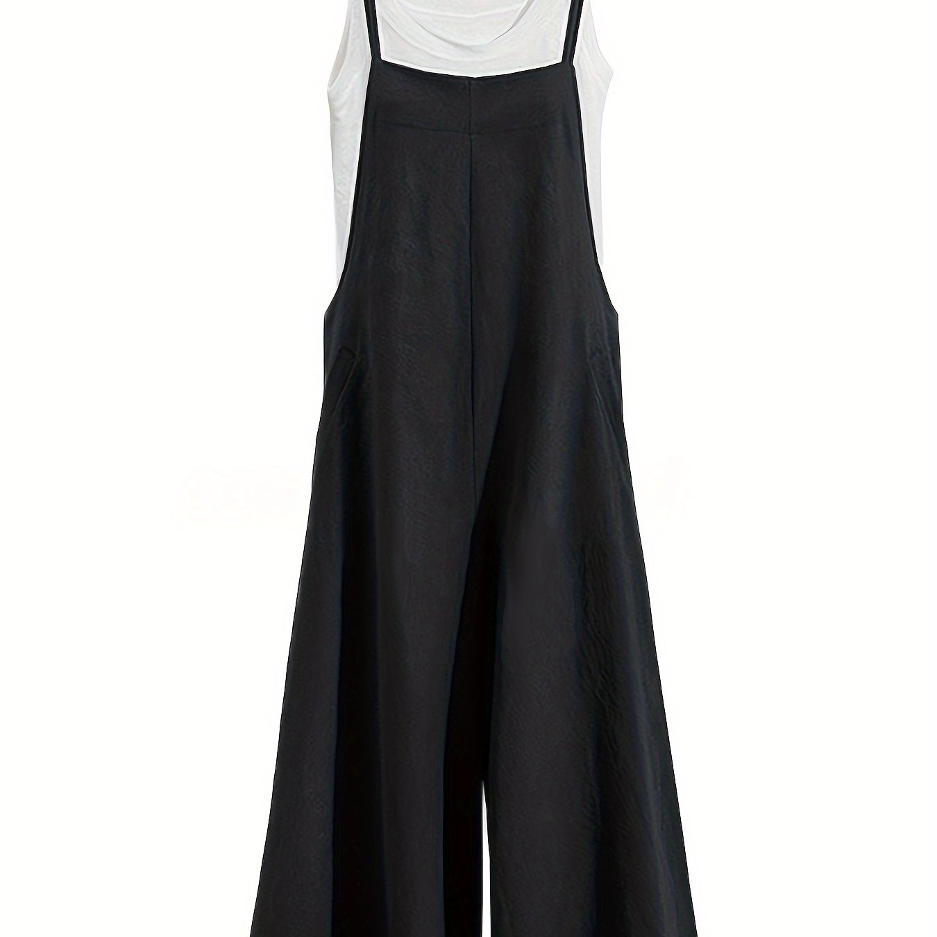 TEMU Women's Plus Size Elastic Strapless Bandeau Jumpsuit, Polyester 95% Elastane 5% Knit Fabric, Long Length With Pockets, Medium Stretch, For Spring/summer - No Belt