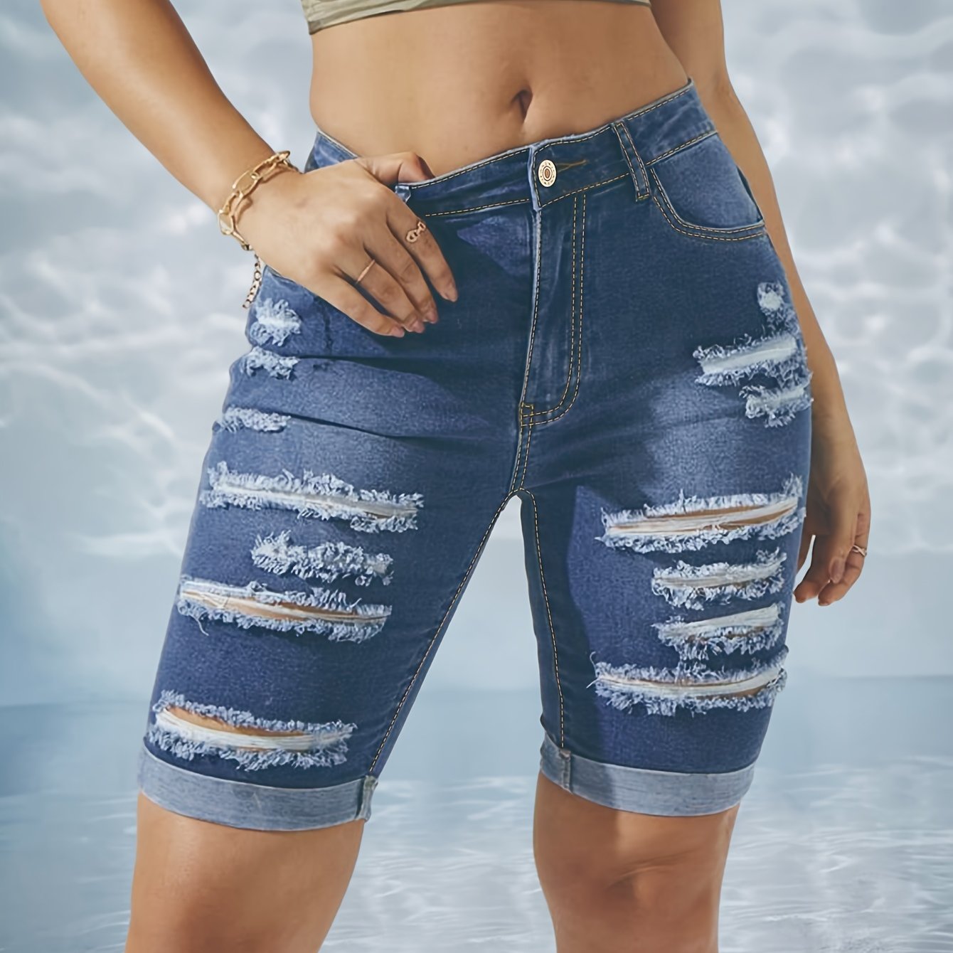 TEMU Women's Shorts With Mid-rise, Tie-dye Design, Tassels, And Distressed For Spring And Summer.