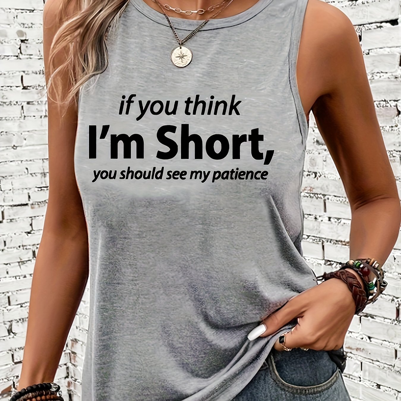 TEMU เสื้อกล้ามสตรีพิมพ์จดหมายตลก - ผสมโพลีเอสเตอร...