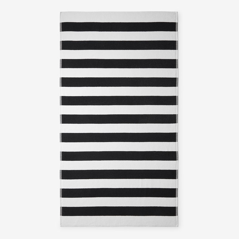 Our Classic Cabana Stripe Beach Towel is made of lightweight cotton terry in vibrant colors to coordinate with our outdoor Sunbrella® cushions. This lightweight towel is woven in Portugal of ultra-soft and absorbent cotton terry. Durable and colorfast, it holds up to sun, sea, and chlorine. Our absorbent beach and pool towels are perfect for a day in the sun Woven of cotton terry Colorfast design is fade-resistant from sun, salt water, or chlorine 450 GSM OEKO-TEX® STANDARD 100 certification keeps you and your family safe from harmful substances (Certification number 18. HUS. 52388, Hohenstein HTTI) Coordinates with your leisure time Made in Portugal | Classic Cabana Stripe Beach Towel - Black, Size 39 X 70, Cotton | The Company Store