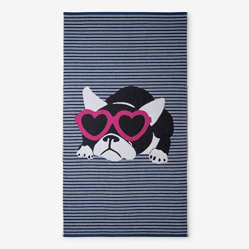 Cotton Terry Beach Towel - Blue/White, Hearts Prin...
