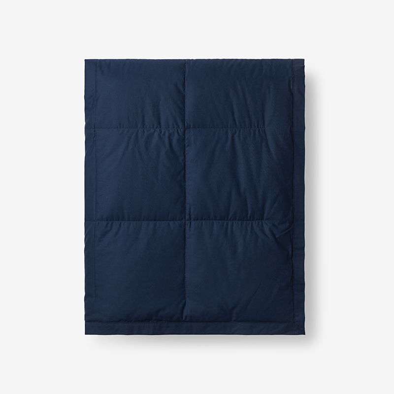 Filled with lofty, ethically sourced, hypoallergenic down, ourLaCrosse™ RDS Certified Down Throw has a 295-thread count premium cotton twill shell and comes in a rainbow of color choices. Soft and warm, without being heavy, this oversized throw is perfect for curling up on couch with a good book. Fill 500-550 fill power ethically sourced, RDS Certified Down Shell 295-thread count lightweight and durable 100% combed cotton twill Warmth Level year-round comfort 8 in. sewn-through box construction keeps down fill in place 1 in. self-binding border Expertly finished with a double-needle top-stitch Hypoallergenic throw Oversized Available in a down alternative option Also available as a blanket 100% RDS down fill, certified by Control Union cert 851460 OEKO-TEX® STANDARD 100 certification keeps you and your family safe from harmful substances (Certification number 18. HUS. 52388, Hohenstein HTTI) Imported | Premium Down Throw Blanket - Navy Blue - Navy-Blue, Cotton | The Company Store