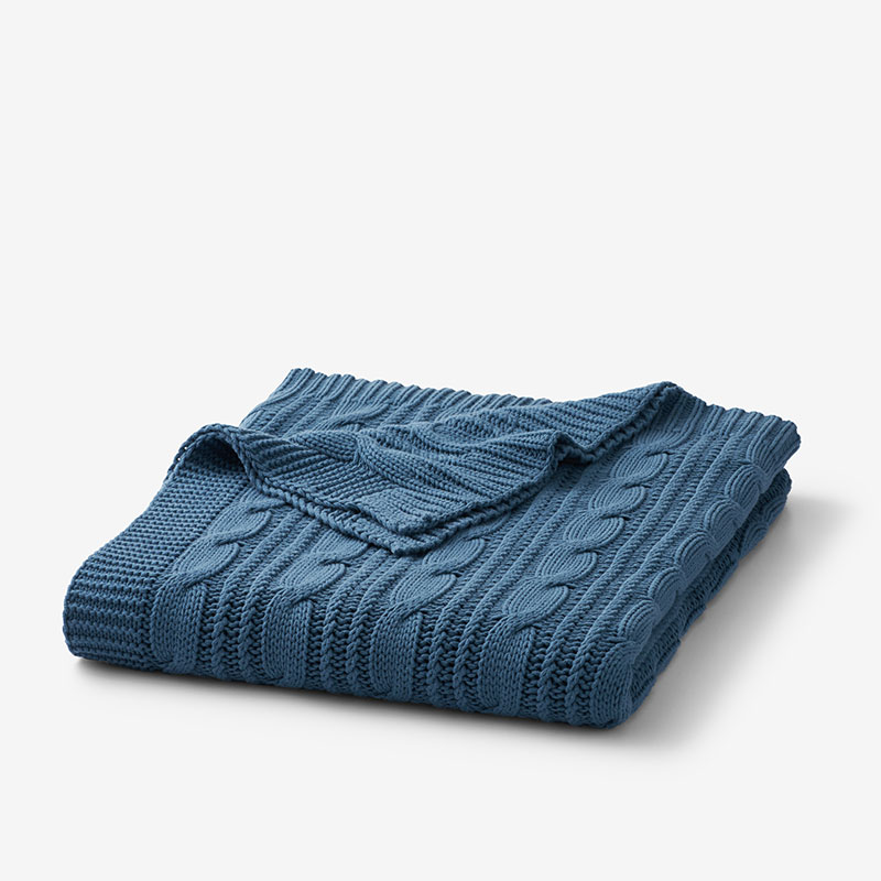 We’ll be reaching for this cozy throw, no matter what the season. Expertly crafted of combed, ring-spun cotton for a super-soft hand and lovely drape, the chunky cotton yarns are knit in a mix of dimensional cables—making it a great textural layer for the sofa or end of the bed. Surround yourself with texture and warmth in any season 100% combed, ring-spun cotton for softness and drape Knitted in dimensional cables OEKO-TEX® STANDARD 100 certification keeps you and your family safe from harmful substances (Certification number 18. HUS. 52388, Hohenstein HTTI) Made in India | Classic Chunky Cable Knit Throw Blanket - Denim Blue, Cotton | The Company Store