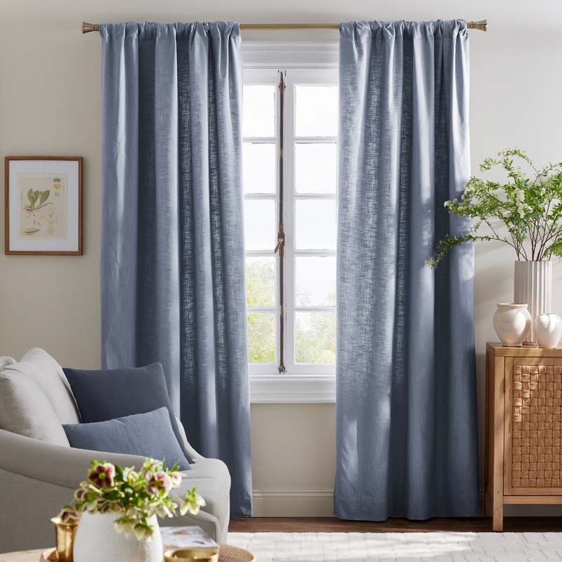This textural window curtain features a dimensional cotton weave to bring tactile appeal to any space, and it comes with your choice of liner (sold separately). Create a coordinated look by layering it with the matching Texture Pillow Covers (sold separately) for a polished look100% cotton. Available with a cotton liner or blackout liner, sold separately. Each curtain sold individually. Rod pocket. Coordinates with our Company Cotton™ Texture Decorative Square and Lumbar Pillow Covers, sold separately. Made in India | Texture Window Curtain - Dusty Blue, 96 in., Size Curtain50 X 108, Cotton | The Company Store