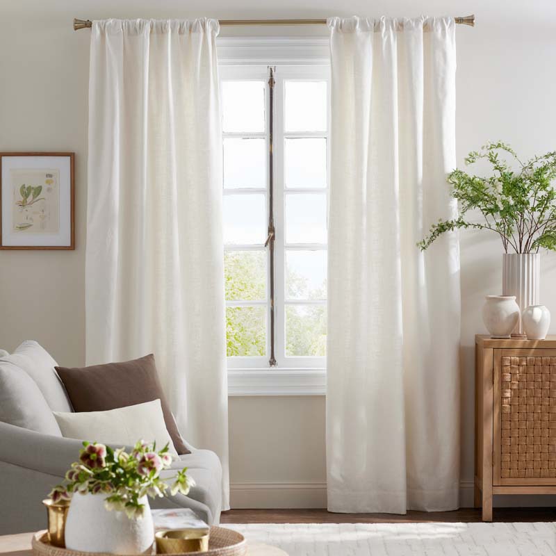 Our Company Cotton™ Sheer Window Curtain is woven of a gauzy cotton-linen blend that gently filters light to imbue your space with relaxed appeal. It looks lovely on its own or layered with other curtains. 80% linen and 20% cotton Sheer and breezy Each curtain sold individually Rod pocket Made in India | Sheer Window Curtain - Natural, 108 in. - Beige, ivory, Size Curtain50 X 108, Linen | The Company Store