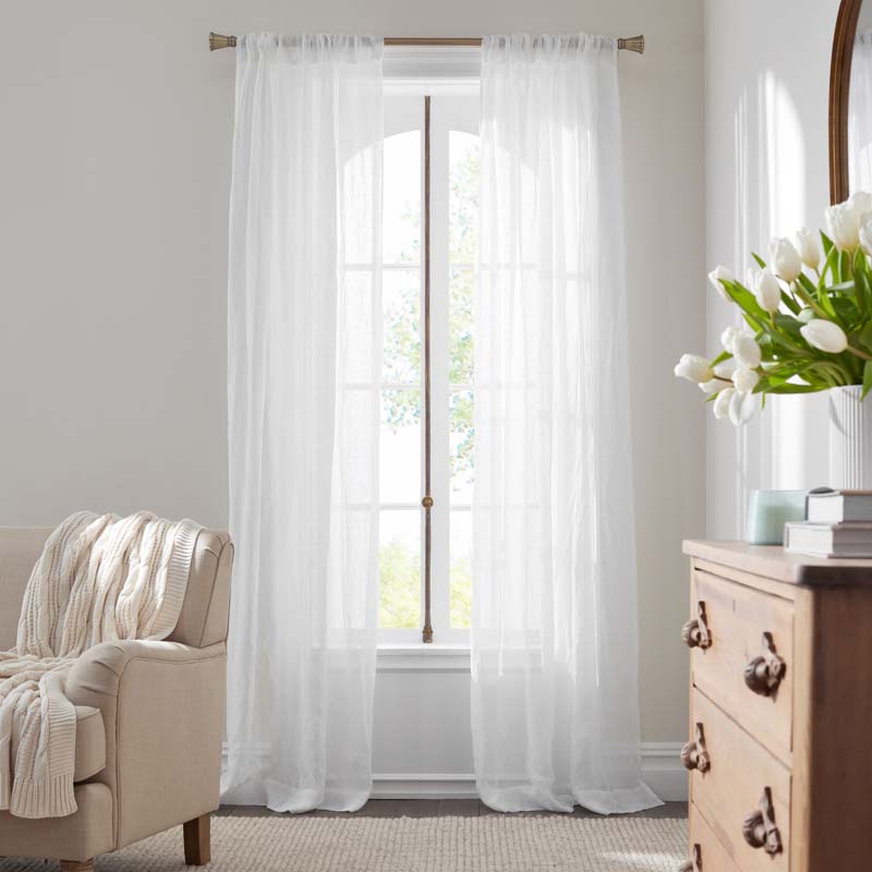 Our Company Cotton™ Sheer Window Curtain is woven of a gauzy cotton-linen blend that gently filters light to imbue your space with relaxed appeal. It looks lovely on its own or layered with other curtains. 80% linen and 20% cotton Sheer and breezy Each curtain sold individually Rod pocket Made in India | Sheer Window Curtain - White, 108 in., Size Curtain50 X 108, Linen | The Company Store