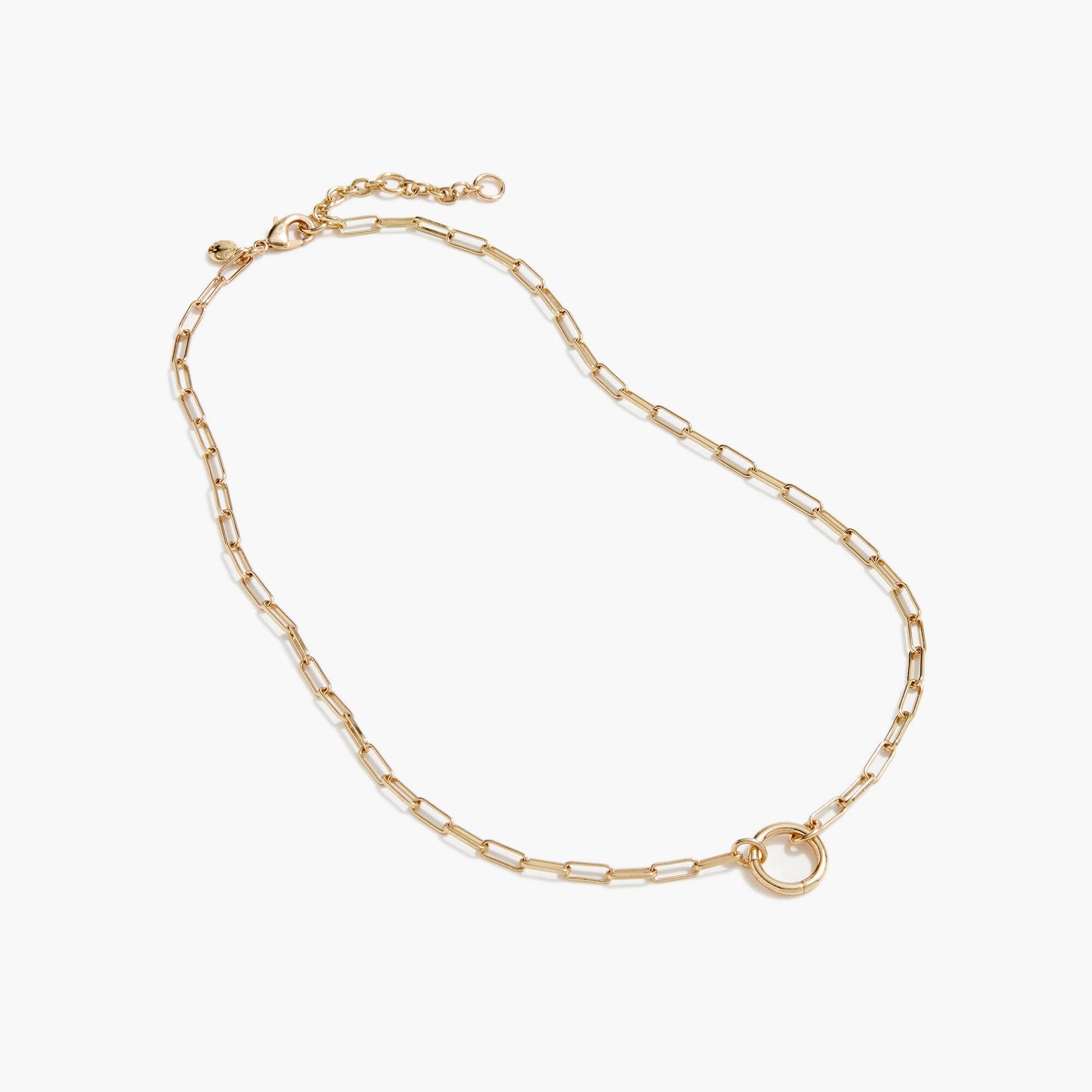 Discover the perfect blend of modern elegance and everyday versatility with our Paper-Clip Charm Link Chain Necklace with Ring from J.CREW Factory. This beautifully crafted necklace features a sleek, minimalist design that effortlessly complements any outfit, whether you're dressing up for a special occasion or adding a touch of sophistication to your daily look. Made from a thoughtful combination of brass, recycled brass, and steel, this necklace is not only stylish but also durable and built to last. The subtle shimmer of cubic zirconia adds a hint of sparkle without overpowering your ensemble, making it an ideal accessory for both daytime and evening wear. Available at select J.CREW Factory locations and online at factory.jcrew.com, this necklace is a must-have for anyone who appreciates timeless jewelry with a contemporary twist. Its versatile design pairs beautifully with other pieces in your collection, allowing you to layer and customize your style with ease. Shop now and enjoy the quality and craftsmanship you expect from J.CREW Factory, all at an unbeatable value. Elevate your accessory game with this chic, on-trend necklace that’s sure to become a staple in your jewelry rotation.