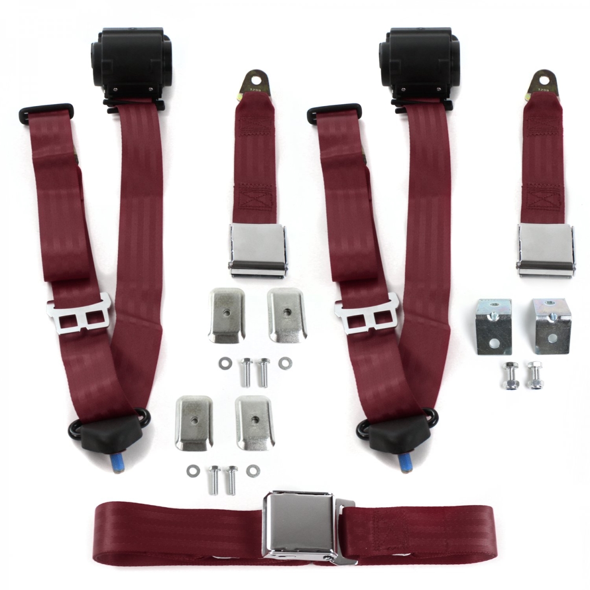Upgrade your classic Chevy Chevelle with the ultimate in safety and style. Our 1968–1972 Chevelle Airplane 3-Point Retractable Seat Belt Kit in rich burgundy delivers modern protection without compromising vintage appeal. Designed specifically for bench seat models, this kit includes two retractable shoulder belts and one lap belt, all engineered for easy installation and reliable daily use.