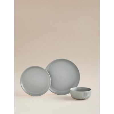 Grey Ribbed Stoneware Dinner Set - 12 Piece