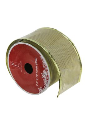 It's Christmas time again! This pack of vibrant craft ribbon spools helps you to spruce up your festive decor. The sparkling horizontal lines make it look elegant. This creative pack helps in creating your winter wonderland accent your decorations and wrap gifts. This festive season feel the joy when your loved ones unwrap happiness! Product Features: Shimmery gold ribbon features horizontal lines with a sparkling gold wire trim Sewn wire edged ribbon allows you to bend and shape your creations to decorate with ease Ribbon comes on with 12 separate spools Perfect for Christmas decorating or gift accenting Dimensions of each spool: 2.5" wide x 10 yards in length Material(s): polyester/wire Pack includes 12 spools of the ribbon shown for a total of 120 yards of ribbon | Northlight Club Pack of 12 Shimmery Gold Wired Christmas Craft Ribbon Spools 2.5Inch x 120 Yards